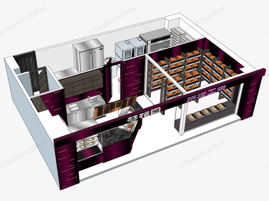 Purple Bakery Shop Design Commercial Space 988Purple bakery shop design idea sketchup 3d model.DownloadEdges:1380396Faces:619317File Version:SketchUp 8.skp File Size:12.7 MBTag Count:11Materials:111Render:NoneBakeryRetail
