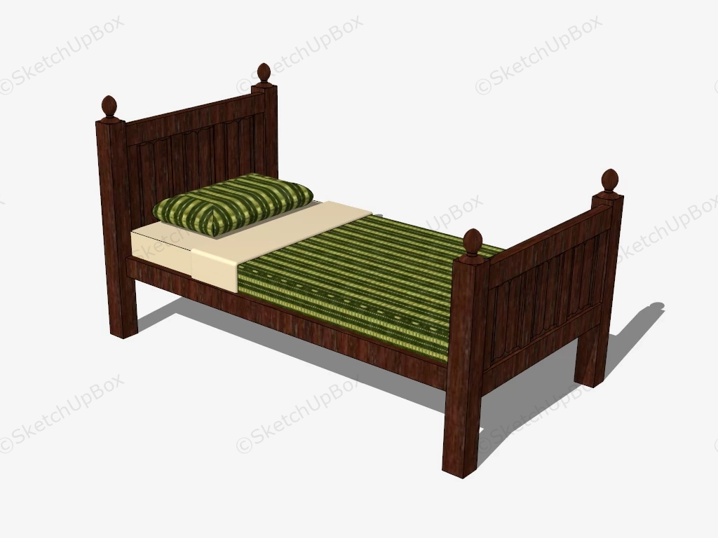 Antique Wooden Single Bed Bedroom 646Antique brown wooden single bed sketchup 3d model.DownloadEdges:11396Faces:4705File Version:SketchUp 8.skp File Size:535 KBTag Count:1Materials:3Render:NoneBedroom FurnitureBeds