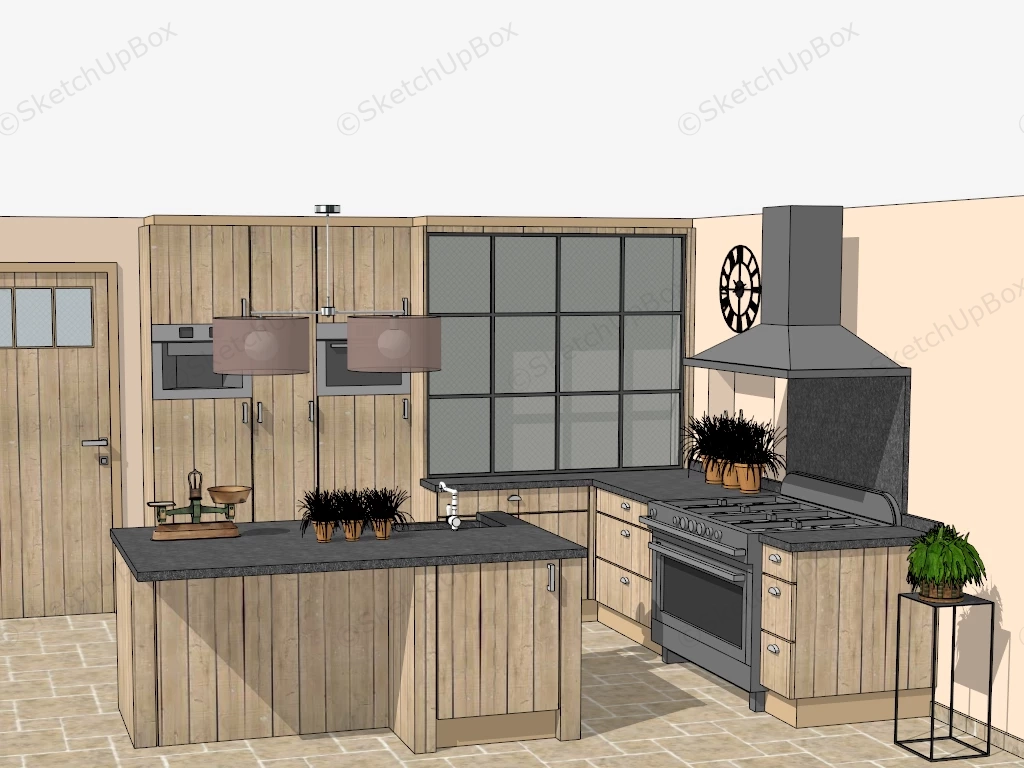 Rustic Kitchen With Island Kitchen 676Rustic kitchen with island sketchup 3d model.DownloadEdges:45400Faces:15797File Version:SketchUp 8.skp File Size:4.27 MBTag Count:1Materials:44Render:NoneKitchen CabinetsKitchen Island