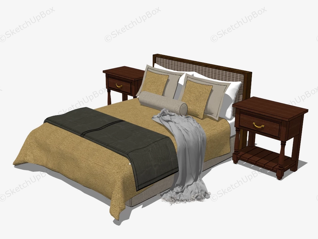 Retro Bed And Nightstands Bedroom 1.63kRetro bed and nightstands sketchup 3d model.DownloadEdges:97653Faces:56802File Version:SketchUp 8.skp File Size:9.89 MBTag Count:2Materials:18Render:NoneBedroom FurnitureBedsNightstand