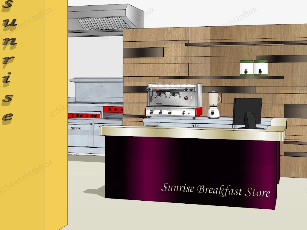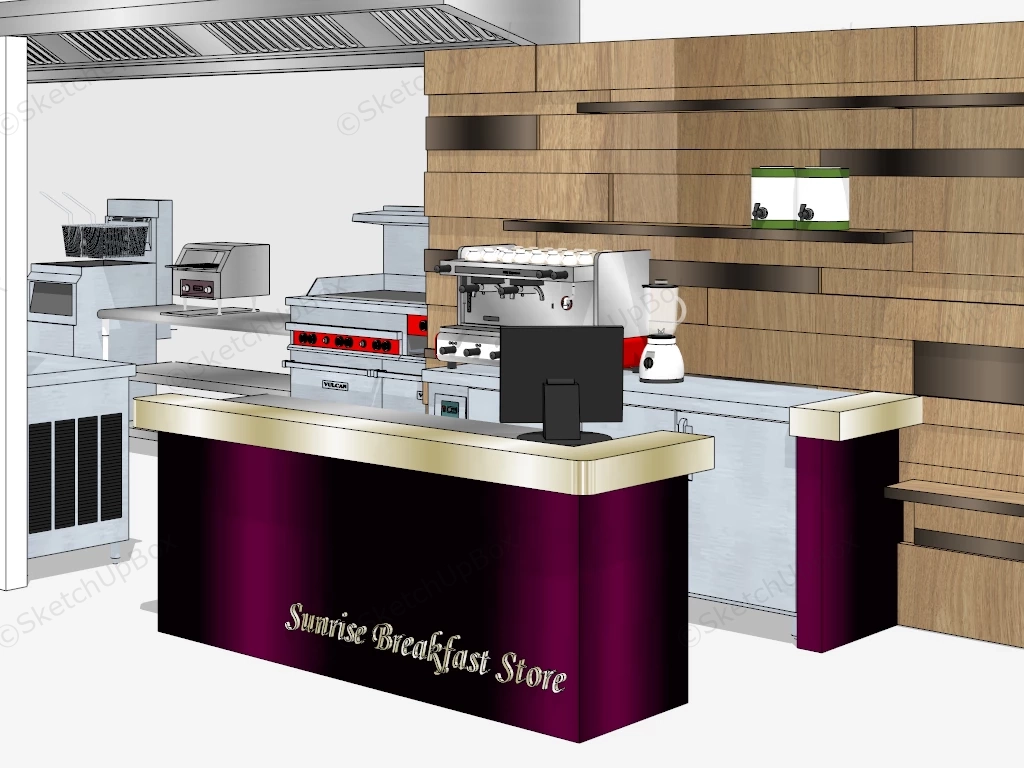 Sunrise Breakfast Store Commercial Space 954Sunrise breakfast store sketchup 3d model.DownloadEdges:299342Faces:133386File Version:SketchUp 8.skp File Size:11.8 MBTag Count:6Materials:90Render:NoneFood StoreRetail