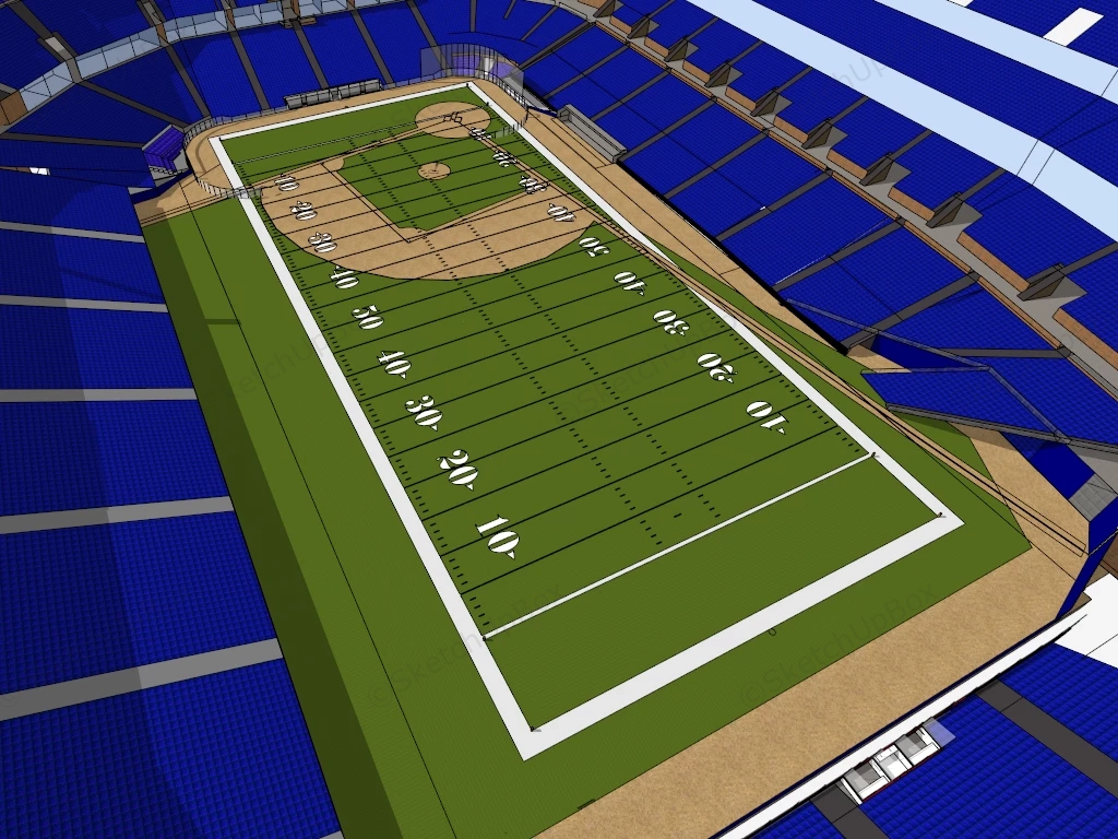 American Football Field Sports Venue 418American football field sketchup 3d model.DownloadEdges:40791Faces:14641File Version:SketchUp 8.skp File Size:10.4 MBTag Count:3Materials:163Render:NoneSports Field