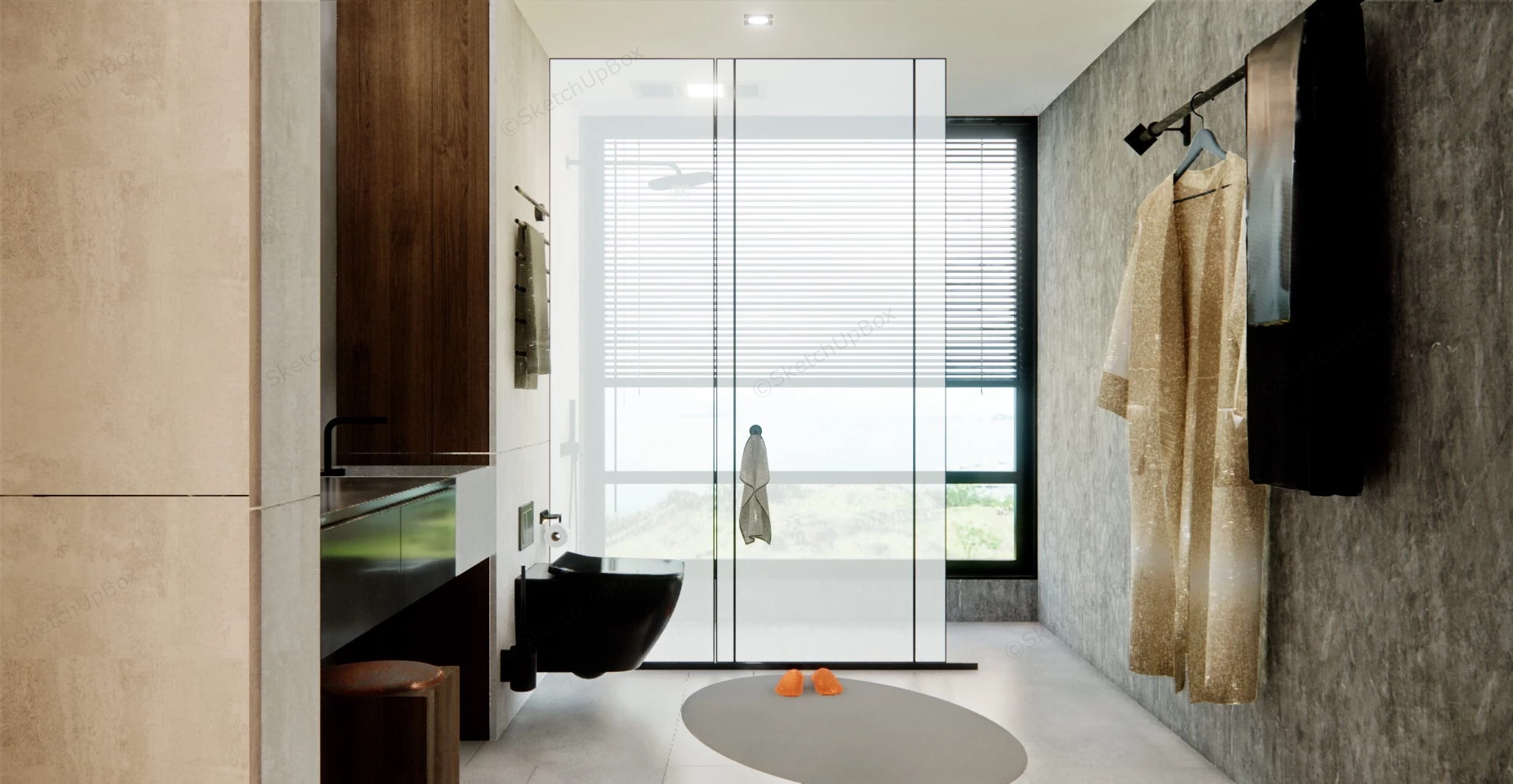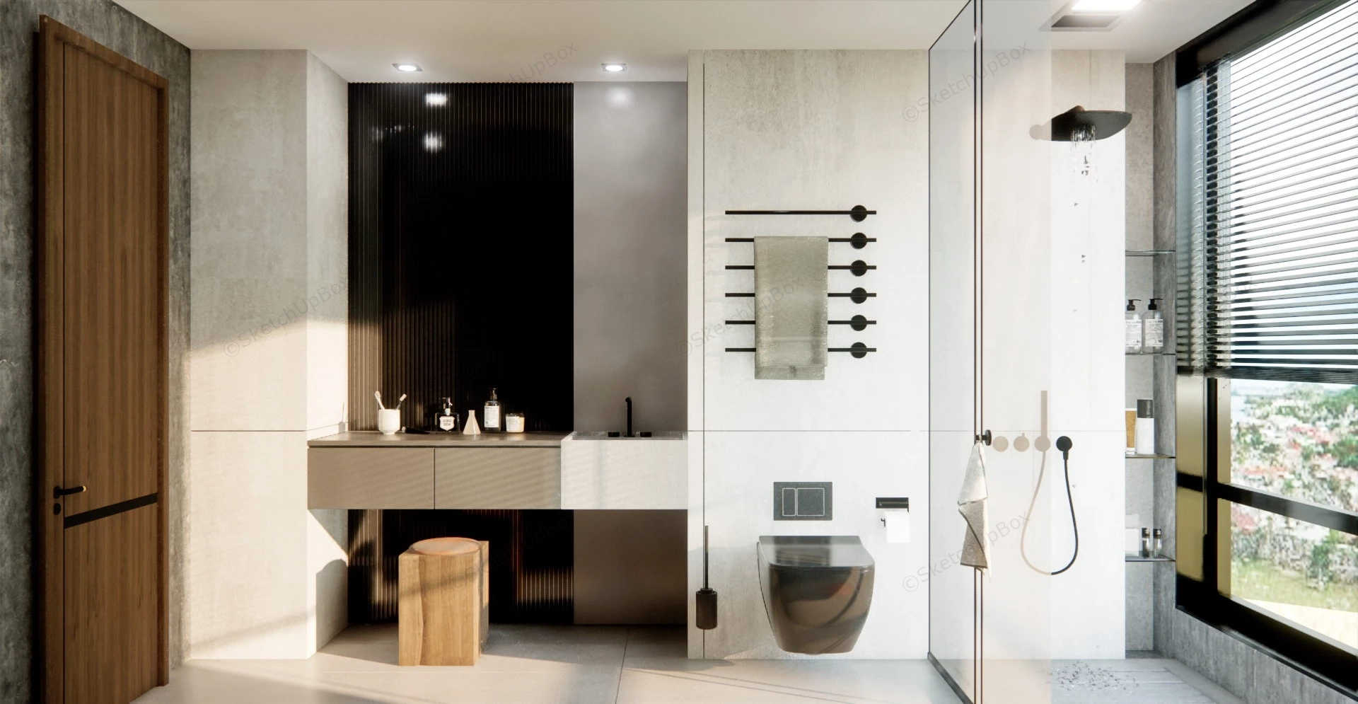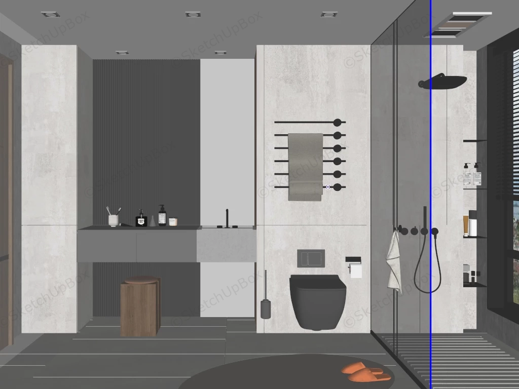 White & black bathroom with shower design ideas sketchup 3d model, black bathroom vanity, walk in bath shower.