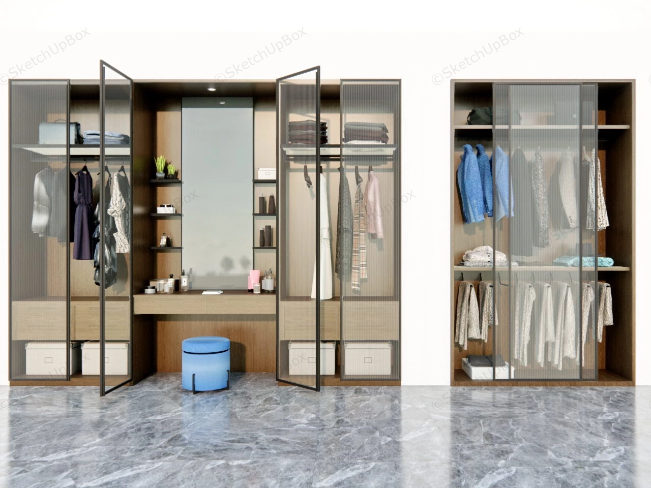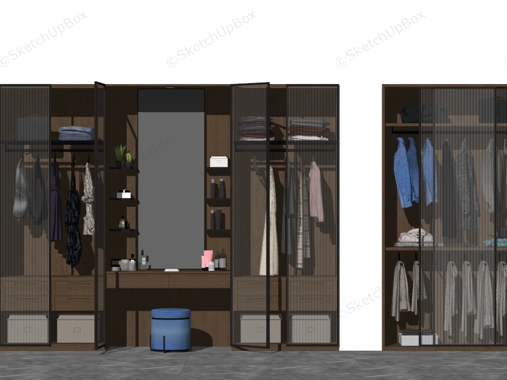Built In Wardrobe Unit Bedroom 1.5kWood built in wardrobe unit with glass door and makeup vanity sketchup 3d model.DownloadEdges:747237Faces:485759File Version:SketchUp 8.skp File Size:131 MBTag Count:1Materials:128Render:NoneMakeup VanityWardrobe