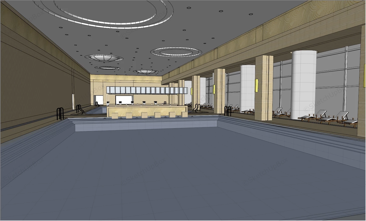 Indoor Swimming Pool Sports Venue 624Indoor swimming pool sketchup 3d model.DownloadEdges:1362035Faces:834361File Version:SketchUp 8.skp File Size:14.5 MBTag Count:1Materials:29Render:NoneSwimming Pool