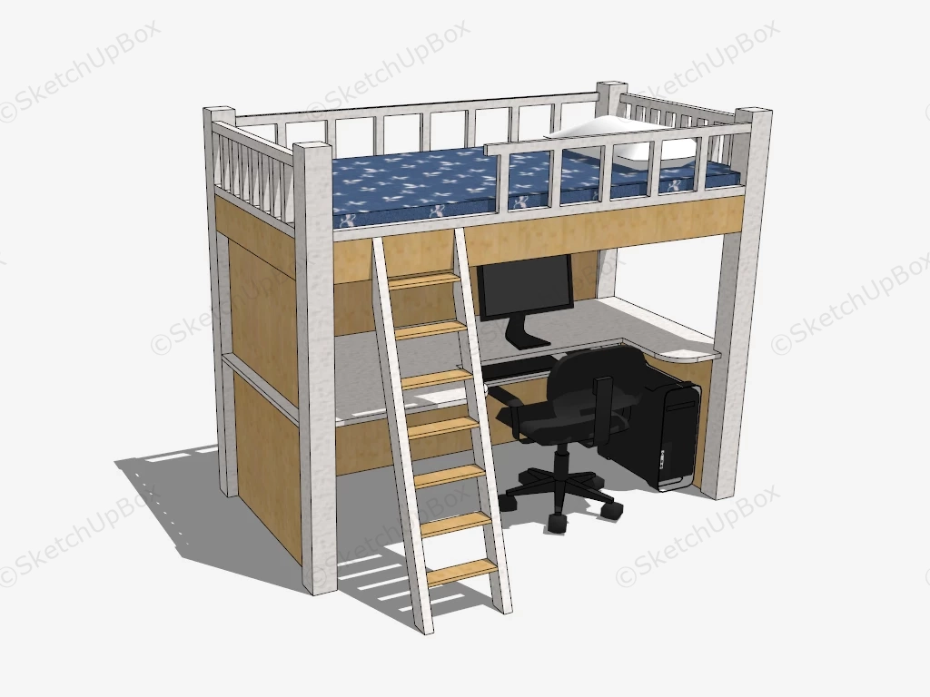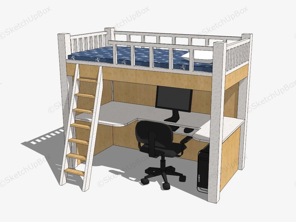 Student Loft Bed With Desk Kids Furniture 1.28kStudent loft bed with desk sketchup 3d model.DownloadEdges:2796Faces:1179File Version:SketchUp 8.skp File Size:355 KBTag Count:1Materials:9Render:NoneBeds