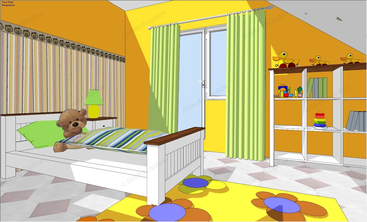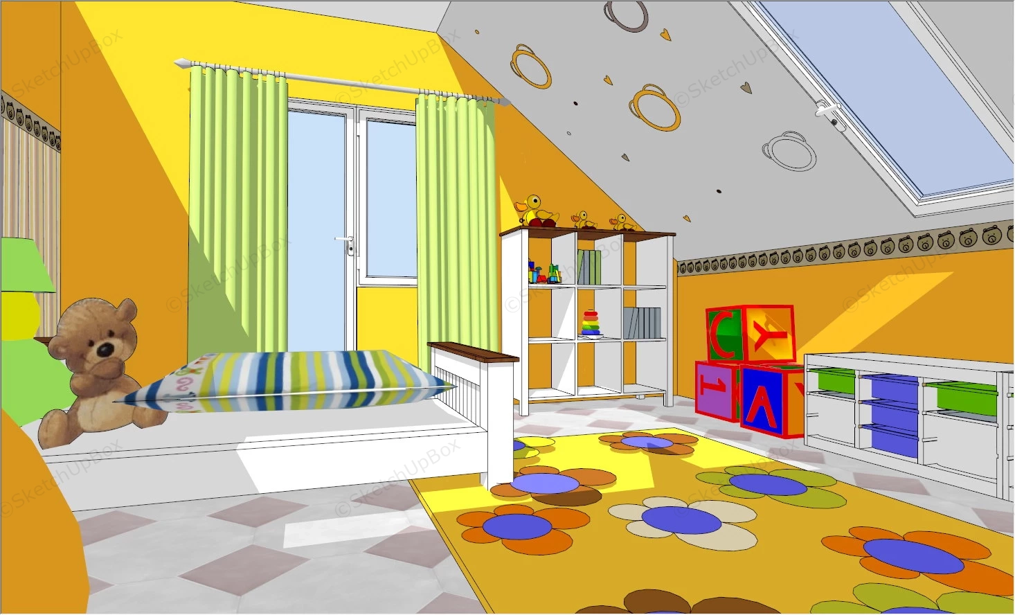 Colorful Kids Room Bedroom 846Colorful kids room interior design sketchup 3d model.DownloadEdges:61999Faces:13805File Version:SketchUp 8.skp File Size:2.66 MBTag Count:4Materials:79Render:NoneKids Room