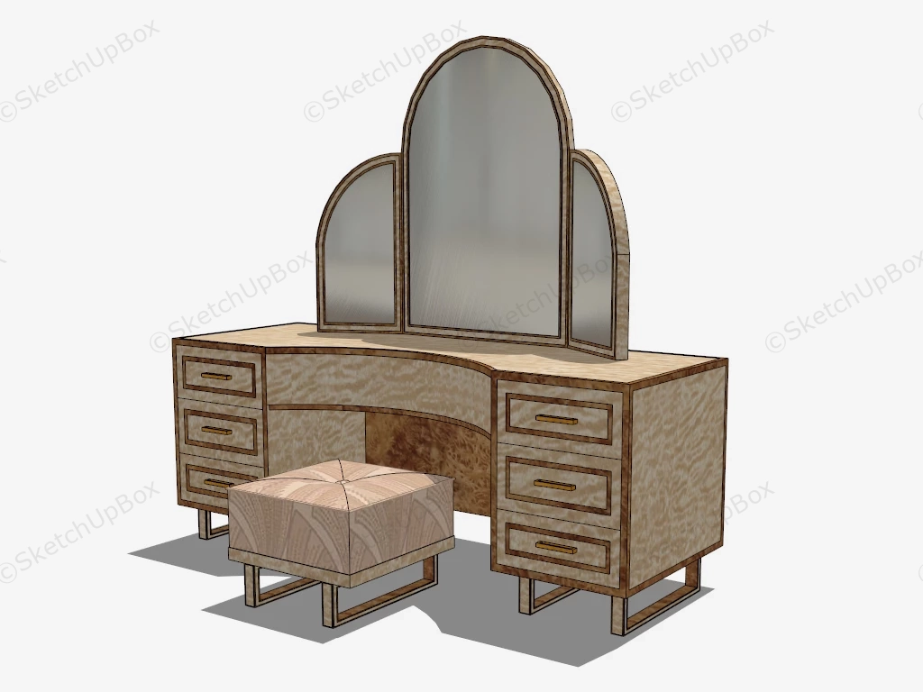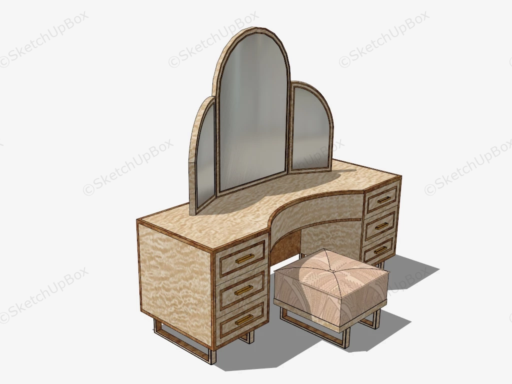Vintage Vanity Dresser Bedroom 550Vintage makeup vanity dresser with mirror and bench sketchup 3d model.DownloadEdges:1445Faces:499File Version:SketchUp 8.skp File Size:614 KBTag Count:1Materials:5Render:NoneDressersMakeup Vanity