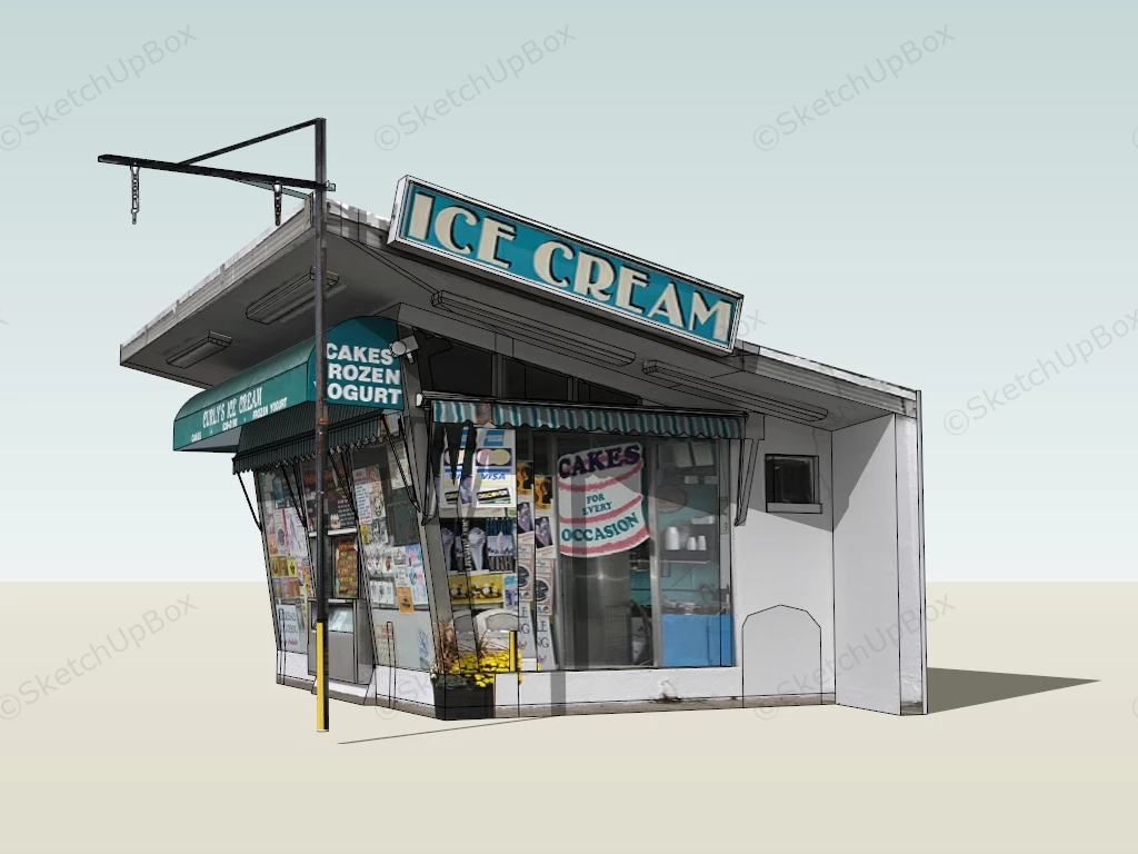 Traditional Ice Cream Kiosk Commercial Buildings 806Retail supplies outdoor ice cream kiosk sketchup 3d model.DownloadEdges:2572Faces:881File Version:SketchUp 8.skp File Size:1.4 MBTag Count:2Materials:10Render:NoneConcession StandKioskRetail Store