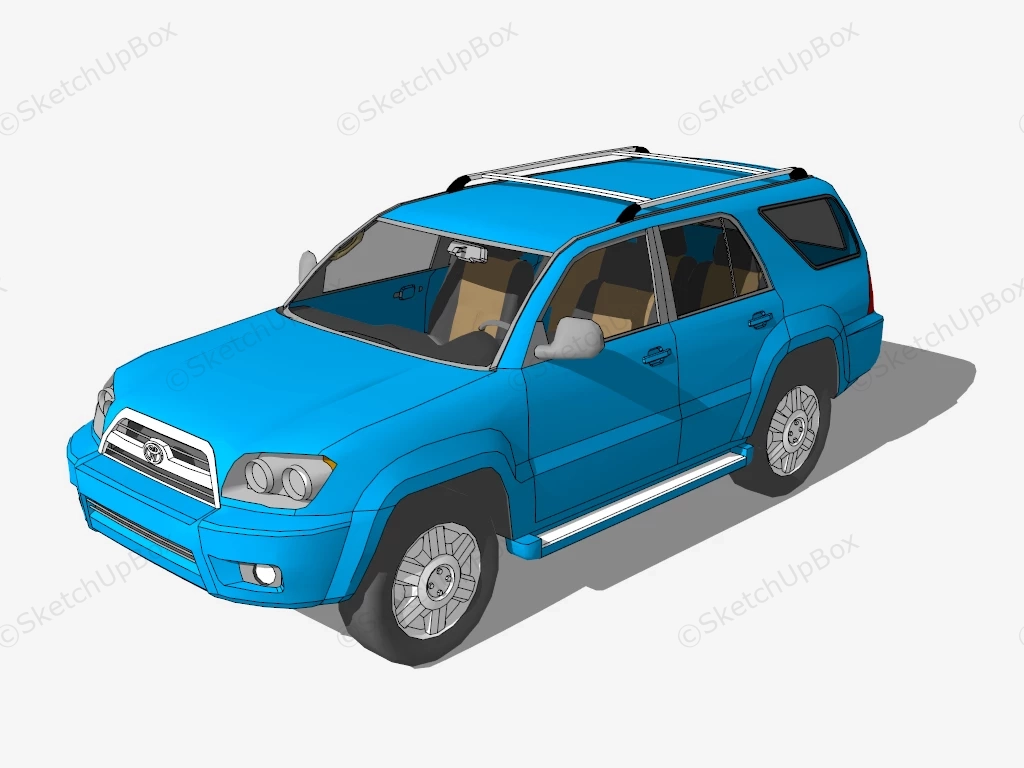 Toyota 4Runner Transportation 703Toyota 4Runner blue 5-door SUV sketchup 3d model.DownloadEdges:58489Faces:33710File Version:SketchUp 8.skp File Size:4.33 MBTag Count:3Materials:28Render:NoneCarsSUVToyota
