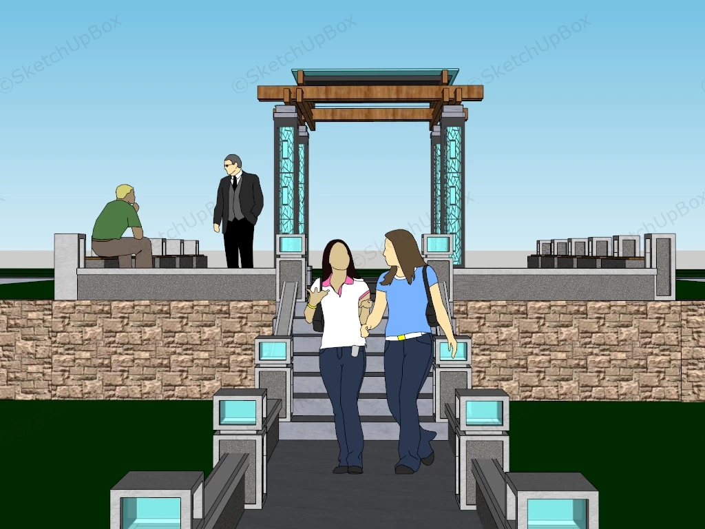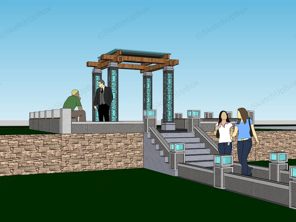 Pergola And Sitting Area Park 1.09kModern pergola and sitting area in public park sketchup 3d model.DownloadEdges:138480Faces:48942File Version:SketchUp 8.skp File Size:1.21 MBTag Count:7Materials:47Render:NonePark FurniturePergolas