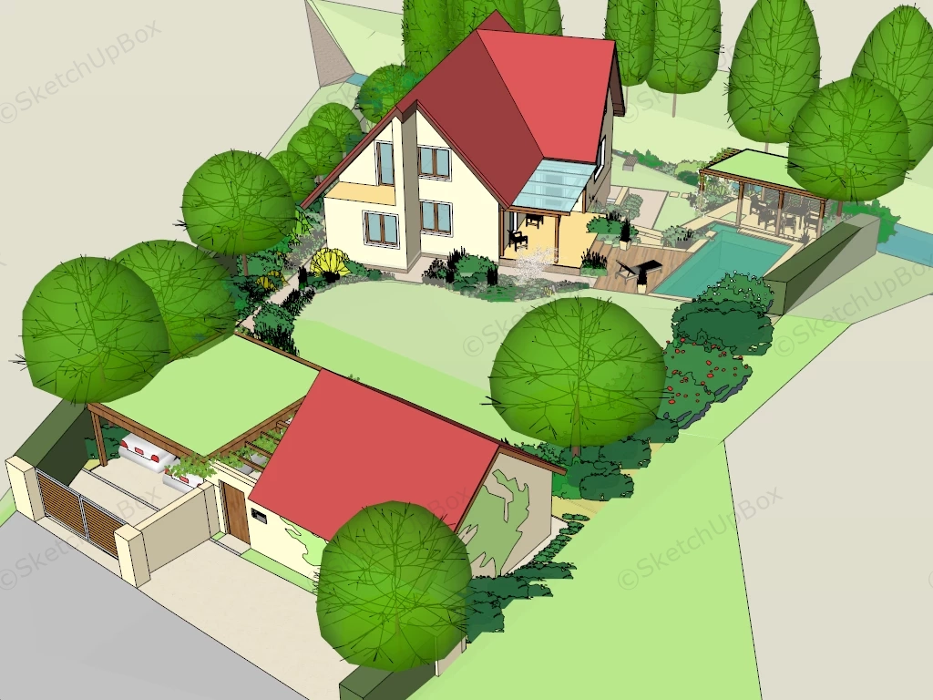 Country House With Garden Design Residential Buildings 1.04kCountry house with garden design sketchup 3d model.DownloadEdges:1053641Faces:156464File Version:SketchUp 8.skp File Size:9.62 MBTag Count:16Materials:135Render:NoneFarmhouseGarden IdeasHouses