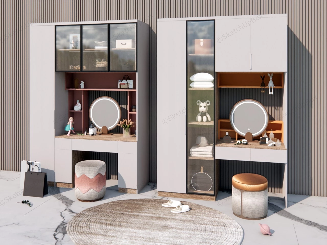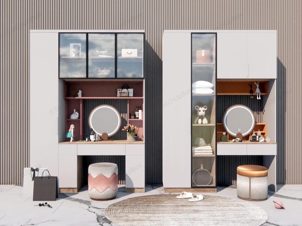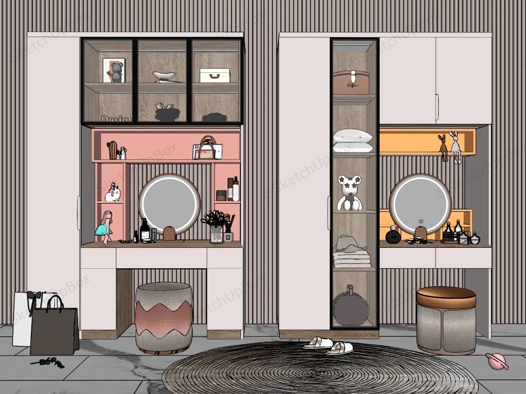Makeup Vanity Set Design Bedroom 397Makeup vanity set desks with storage mirror lighting and stools design ideas sketchup 3d model.VIP onlyOnly VIP downloadUpgrade VIPBuy nowEdges:2044353Faces:1213993File Version:SketchUp 8.skp File Size:320 MBTag Count:4Materials:148Render:NoneDressing TablesMakeup Vanity