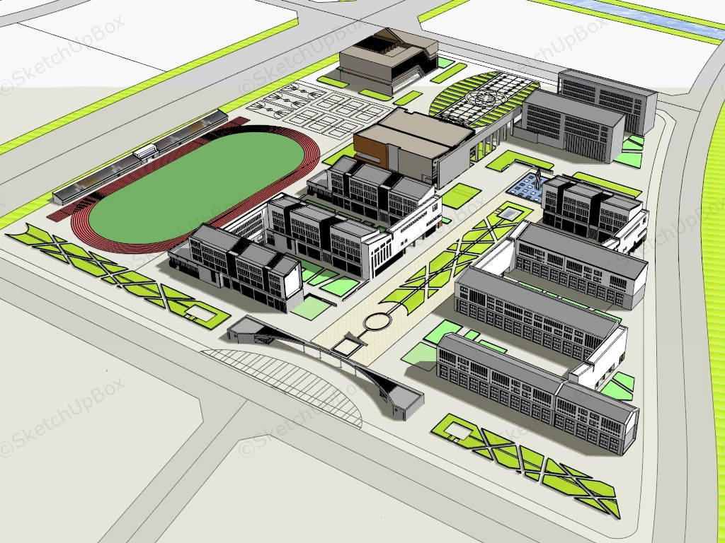 High School Architecture Plan Institutional Buildings 1.26kHigh school architecture design and floor plan sketchup 3d model.DownloadEdges:272125Faces:107700File Version:SketchUp 8.skp File Size:14.3 MBTag Count:12Materials:88Render:NoneEducational InstitutionsSchool