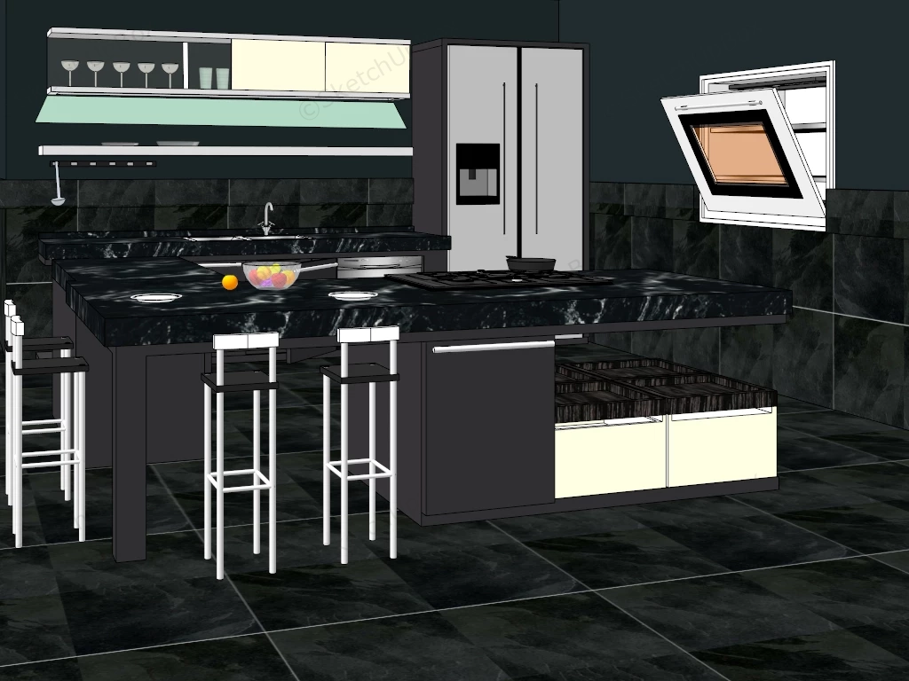 Black Kitchen With Bar Kitchen 1.39kBlack kitchen with bar design idea sketchup 3d model.DownloadEdges:108244Faces:53727File Version:SketchUp 8.skp File Size:5.83 MBTag Count:5Materials:60Render:NoneHome BarKitchen Cabinets