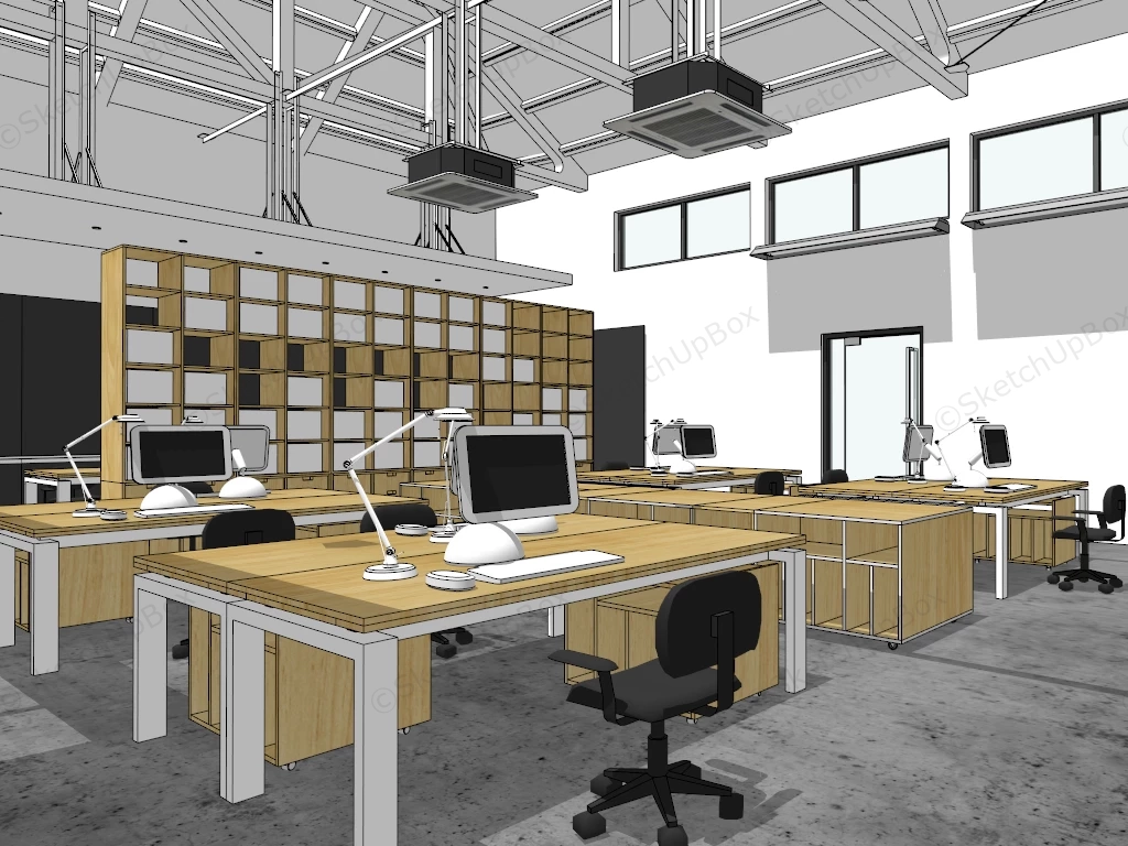Industrial Loft Office Interior Office 1.1kModern industrial style office loft interior design ideas sketchup 3d model.DownloadEdges:239039Faces:102756File Version:SketchUp 8.skp File Size:21.8 MBTag Count:4Materials:40Render:NoneOffice Space