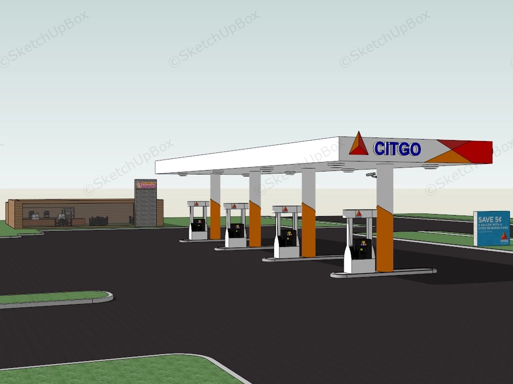 Citgo Gas Station Commercial Buildings 1kCitgo gas station sketchup 3d model.DownloadEdges:131564Faces:24112File Version:SketchUp 8.skp File Size:3.34 MBTag Count:2Materials:70Render:NoneGas Station