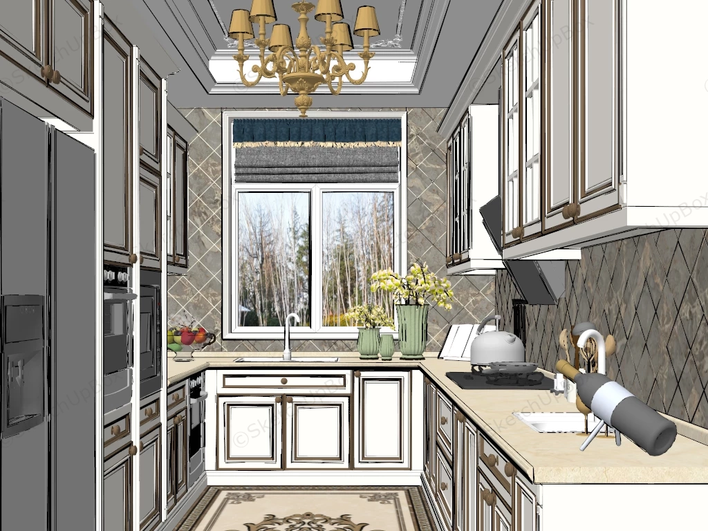 Traditional European Kitchen Design Kitchen 1.55kSmall European kitchen design sketchup 3d model.DownloadEdges:6360980Faces:4221733File Version:SketchUp 8.skp File Size:435 MBTag Count:1Materials:143Render:NoneKitchen AppliancesKitchen Cabinets
