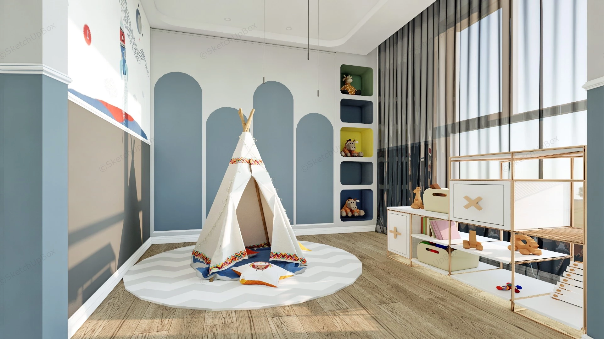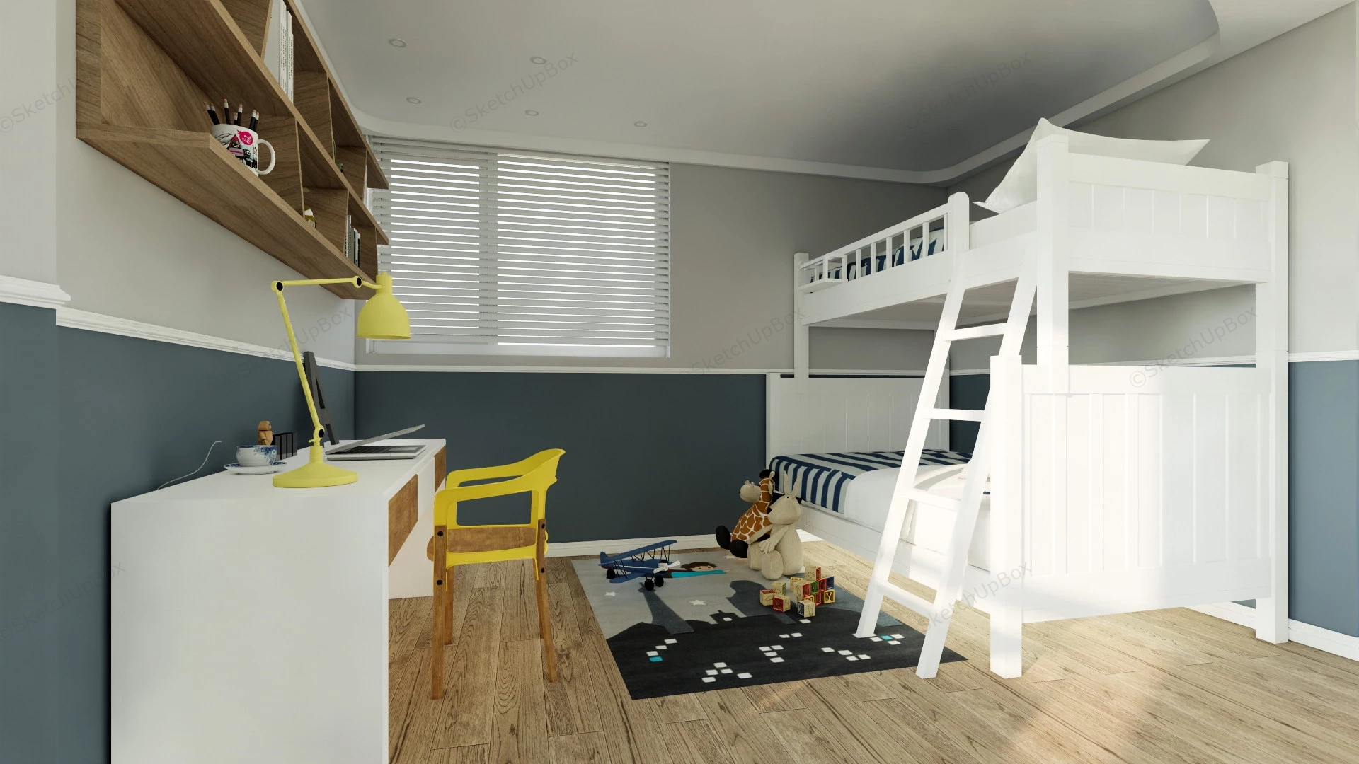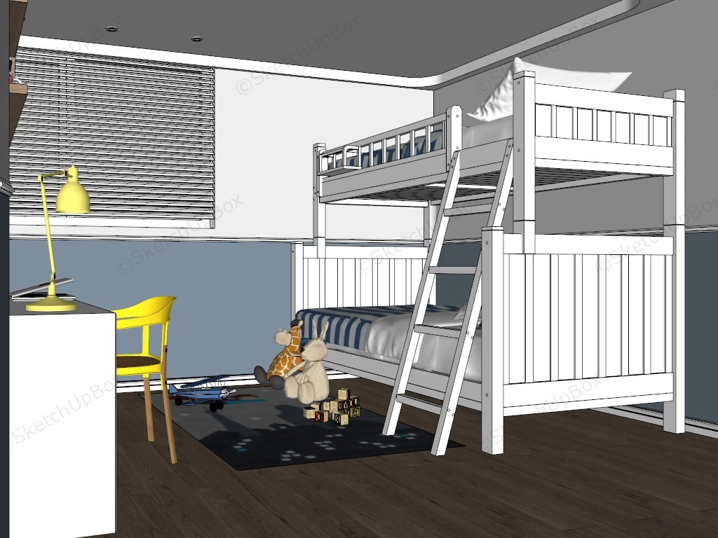 Bunk Beds Kids Room Ideas Bedroom 822Blue and white kids room with bunk beds desk and play area design sketchup 3d model.VIP onlyOnly VIP downloadUpgrade VIPBuy nowEdges:1858448Faces:1090320File Version:SketchUp 8.skp File Size:350 MBTag Count:18Materials:176Render:NoneKids RoomPlayroom