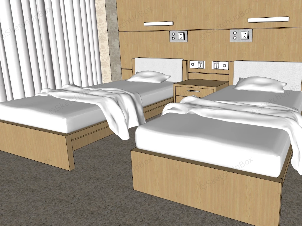 Economy Twin Bed Hotel Room Hotel & Restaurant 1.2kModern economy hotel room with twin beds interior design sketchup 3d model.DownloadEdges:37360Faces:20728File Version:SketchUp 8.skp File Size:6.03 MBTag Count:7Materials:36Render:NoneHotel Room