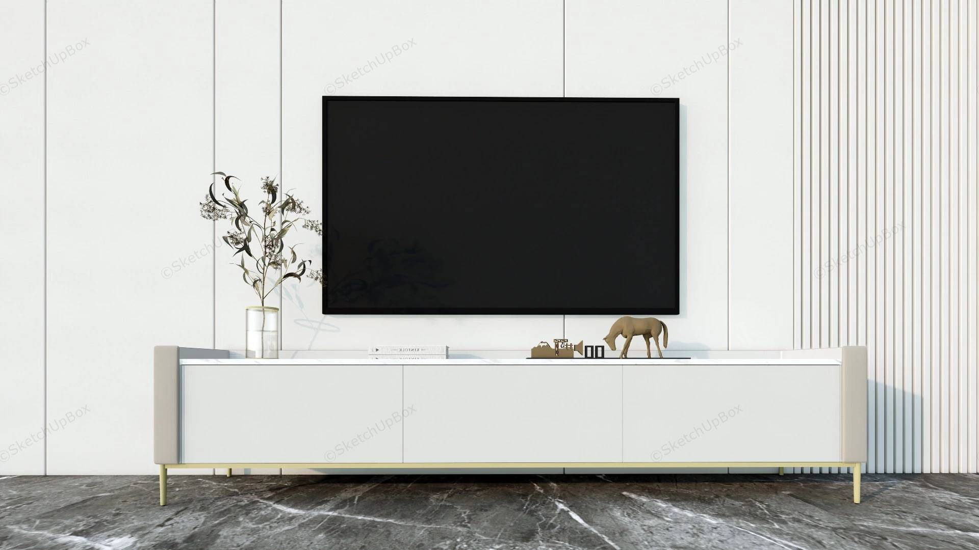 Living Room White TV Stand Furniture 1.67kModern white tv stand for living room sketchup 3d model.DownloadEdges:564287Faces:372403File Version:SketchUp 8.skp File Size:132 MBTag Count:1Materials:24Render:NoneLiving Room FurnitureTV StandTVs