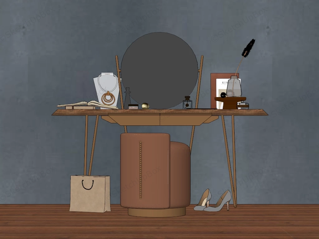 Rustic Makeup Vanity With Stool Bedroom 1.23kRustic makeup vanity with mirror and round stool sketchup 3d model.VIP onlyOnly VIP downloadUpgrade VIPBuy nowEdges:218966Faces:137461File Version:SketchUp 8.skp File Size:41.7 MBTag Count:1Materials:66Render:NoneDressing TablesMakeup Vanity
