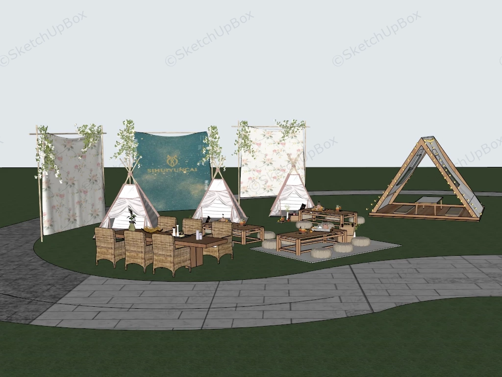 Picnic Point Campground Camping 847Campground & picnic site sketchup 3d model, picnic table, dining table set and tents.VIP onlyOnly VIP downloadUpgrade VIPBuy nowEdges:4791430Faces:2674444File Version:SketchUp 8.skp File Size:100 MBTag Count:9Materials:139Render:NoneCampgroundTent