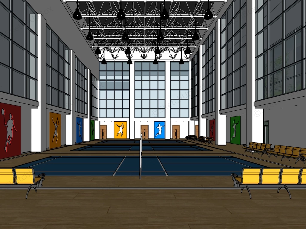 Badminton Stadium Sports Venue 1.45kIndoor badminton court stadium building sketchup 3d model.DownloadEdges:1374390Faces:797540File Version:SketchUp 8.skp File Size:20.2 MBTag Count:1Materials:29Render:NoneStadium