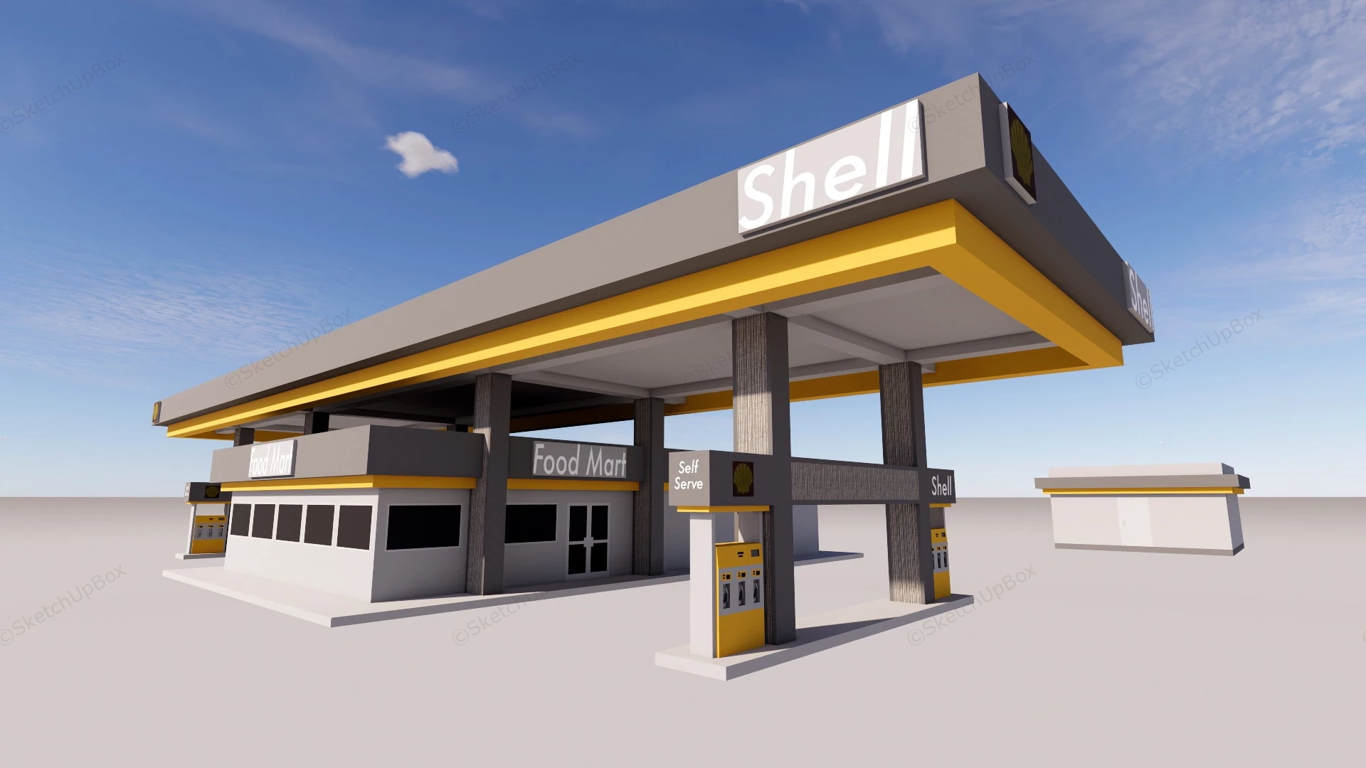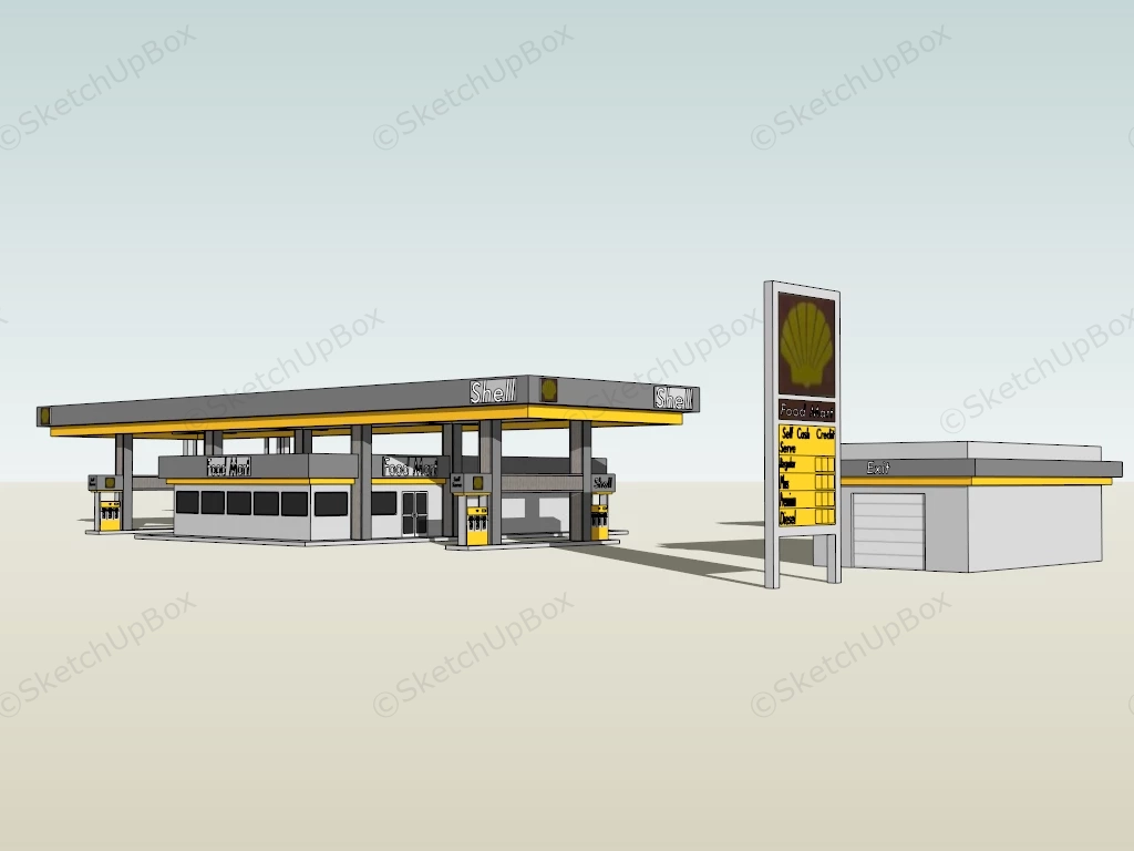 Shell Gas Station Commercial Buildings 441Shell gas station sketchup 3d model.DownloadEdges:14685Faces:2513File Version:SketchUp 8.skp File Size:1.22 MBTag Count:1Materials:10Render:NoneGas Station