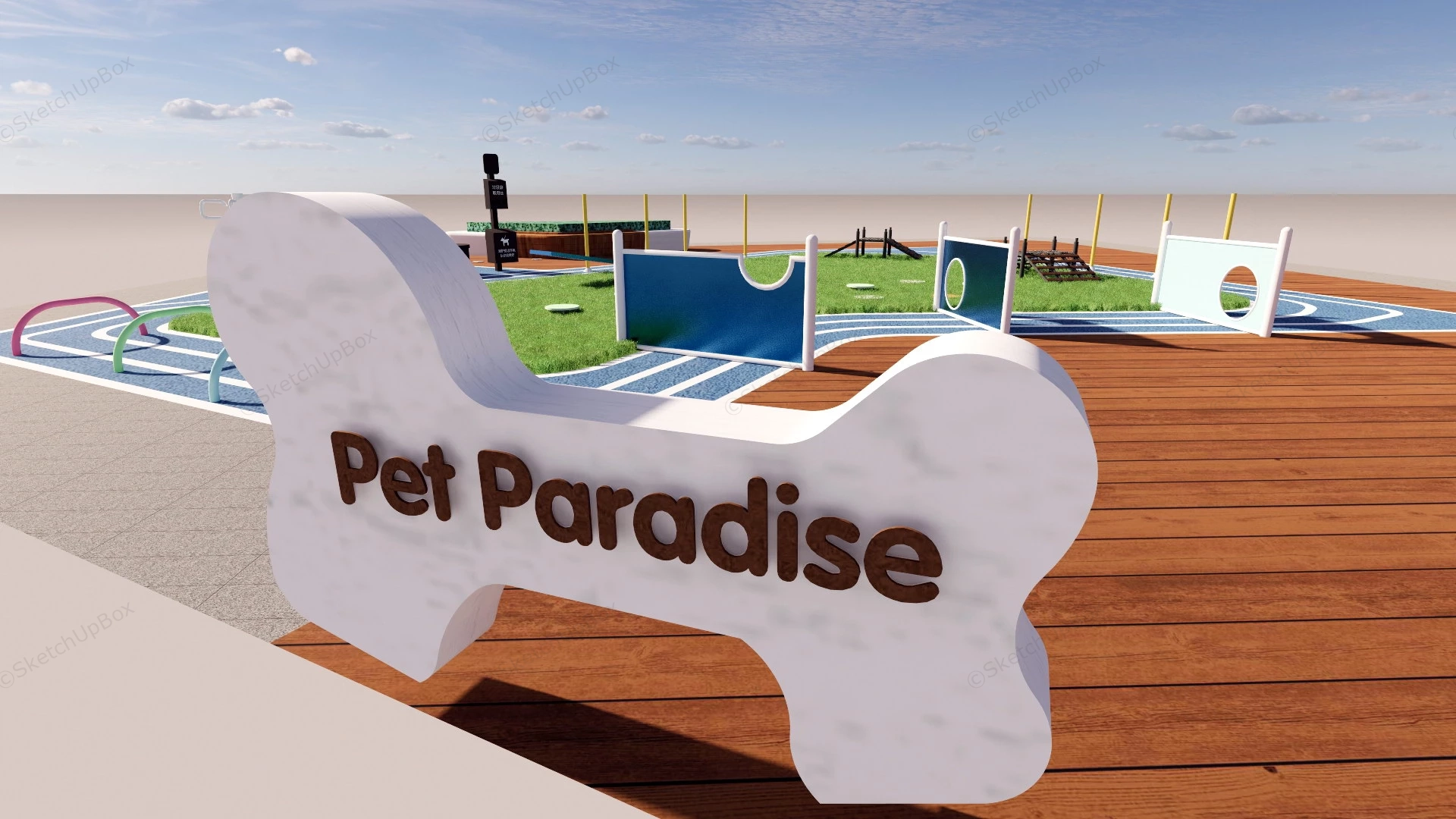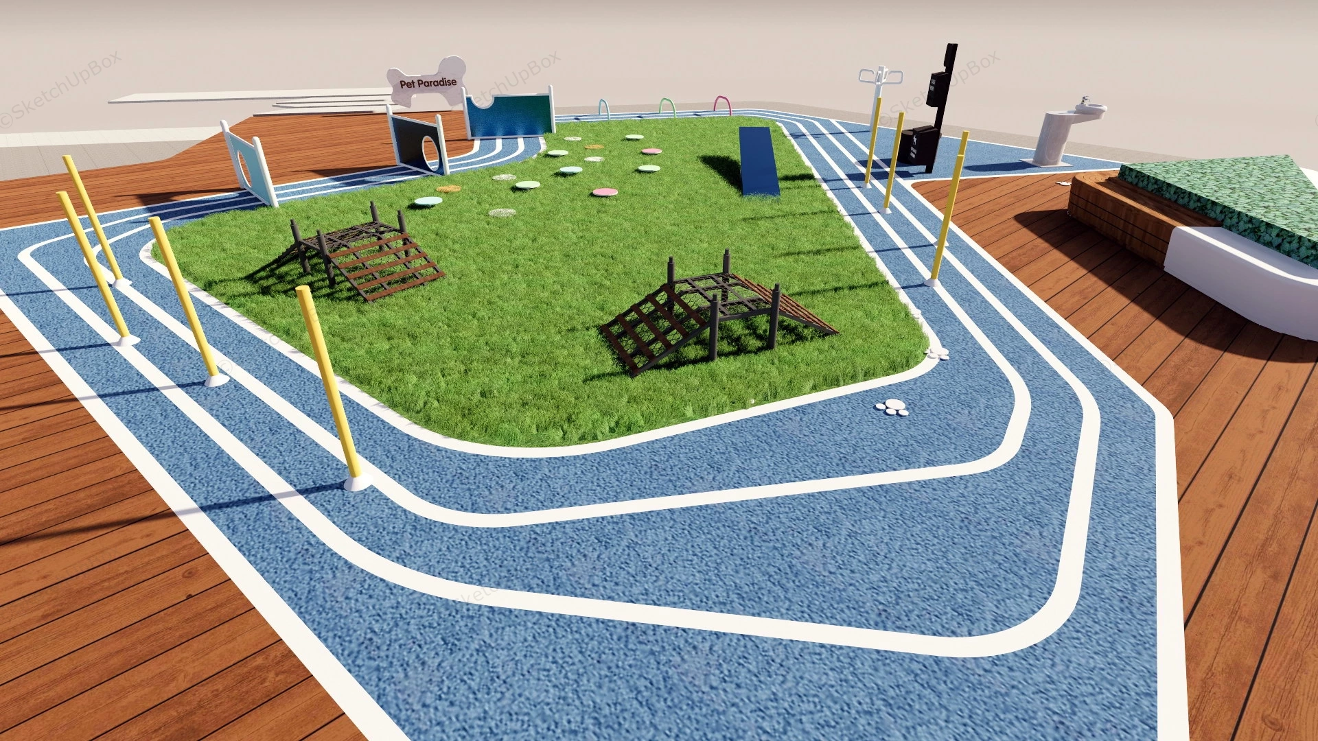 Pet Paradise Park Park 1.59kPet paradise dog park design idea sketchup 3d model.DownloadEdges:55526Faces:24139File Version:SketchUp 8.skp File Size:5.49 MBTag Count:2Materials:31Render:NoneDog Park