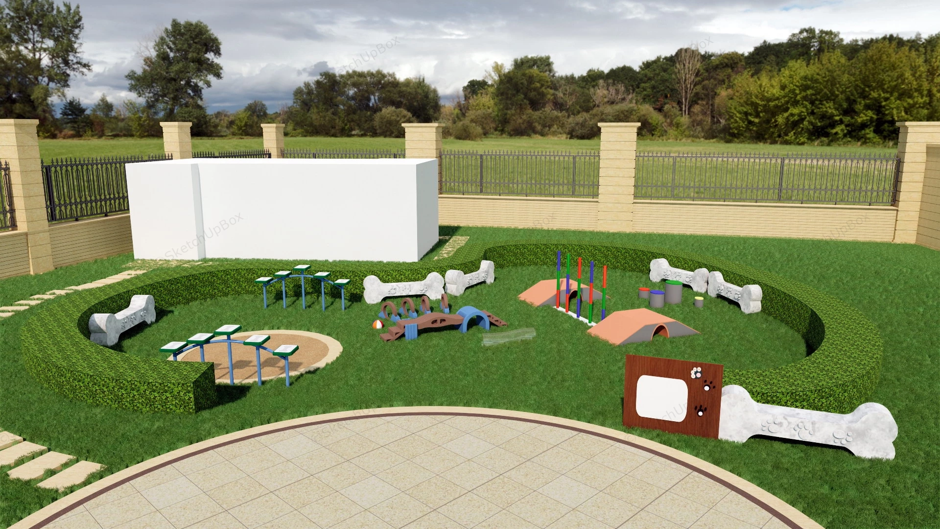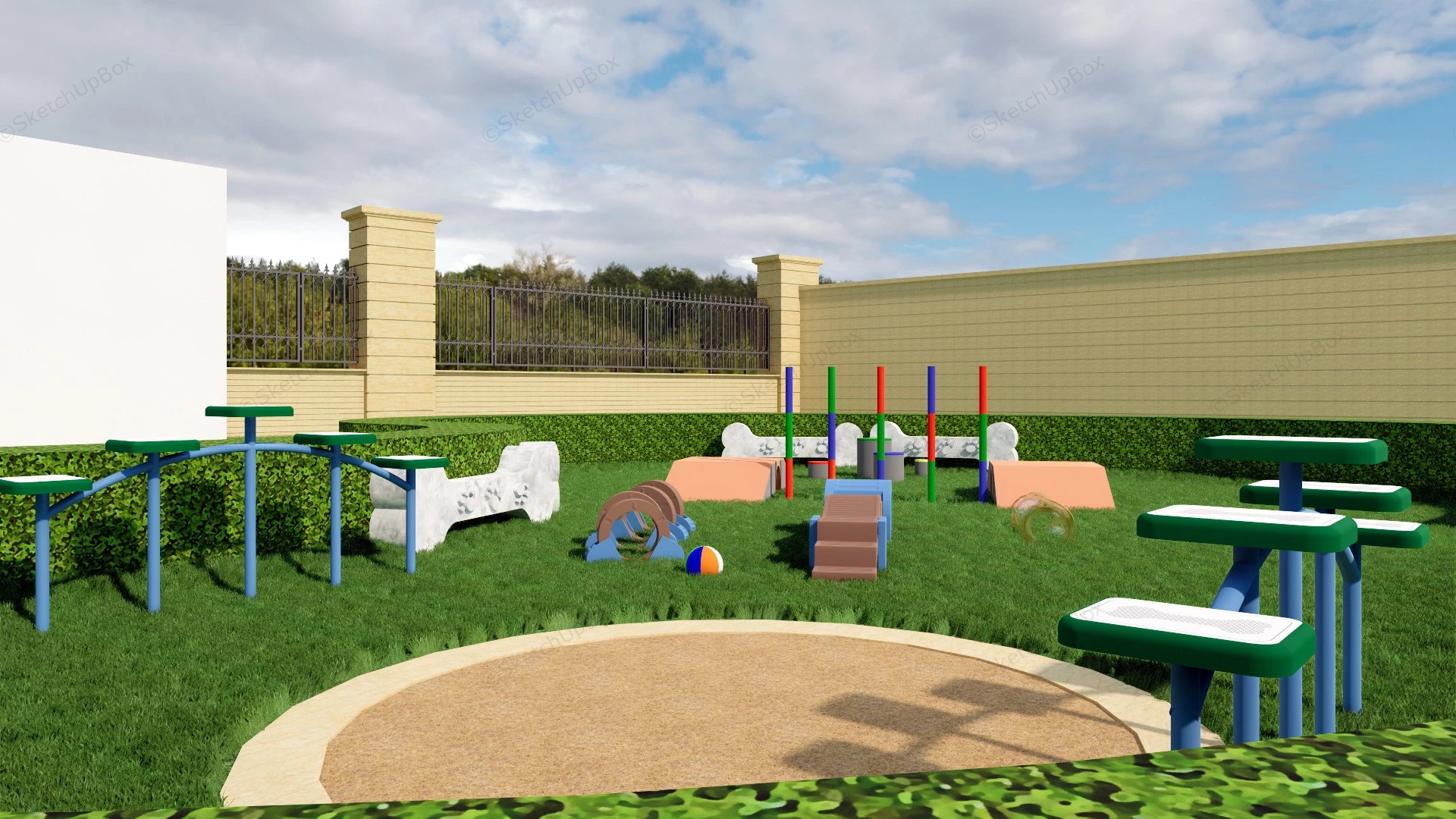 Outdoor Dog Playground Park 2.06kOutdoor dog playground dog park design sketchup 3d model.DownloadEdges:1690074Faces:580601File Version:SketchUp 8.skp File Size:49.7 MBTag Count:2Materials:55Render:NoneDog Park