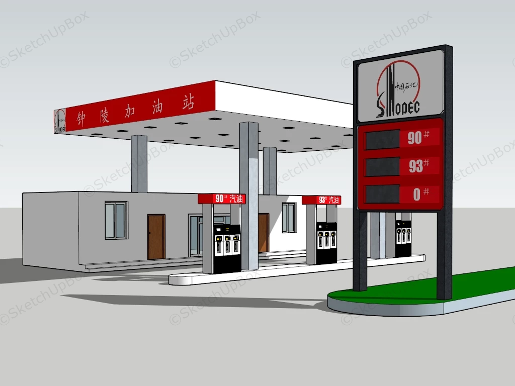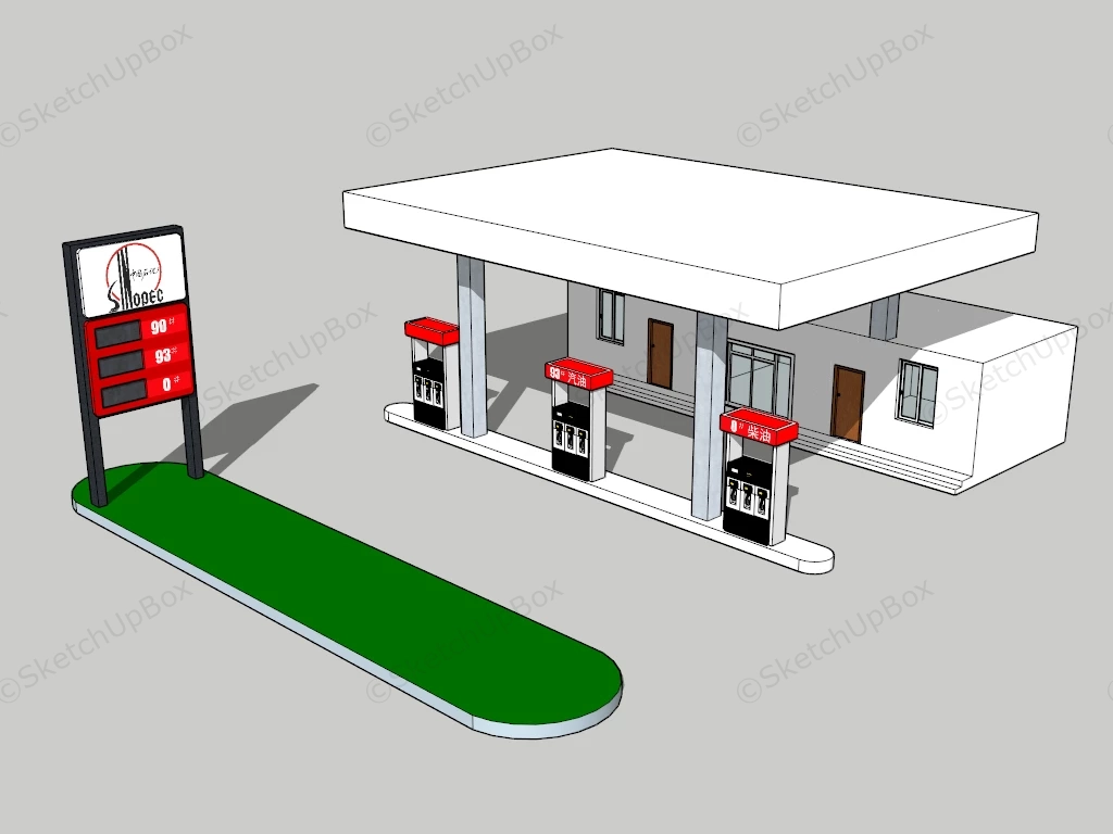 Chinese Sinopec Gas Station Commercial Buildings 700Chinese Sinopec gas station sketchup 3d model.DownloadEdges:14112Faces:5008File Version:SketchUp 8.skp File Size:1.13 MBTag Count:1Materials:25Render:NoneGas Station