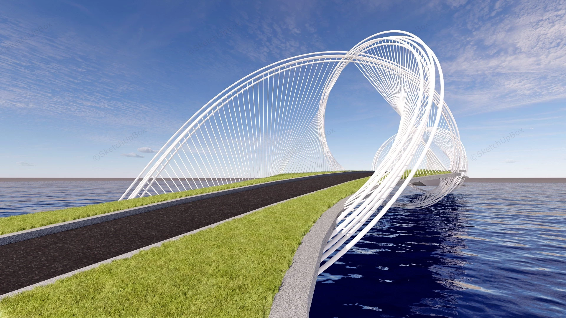 Pedestrian Bridge Infrastructure 1.27kPedestrian bridge footbridge sketchup 3d model.DownloadEdges:103561Faces:50132File Version:SketchUp 8.skp File Size:5.79 MBTag Count:1Materials:4Render:NoneBridgesFootbridge
