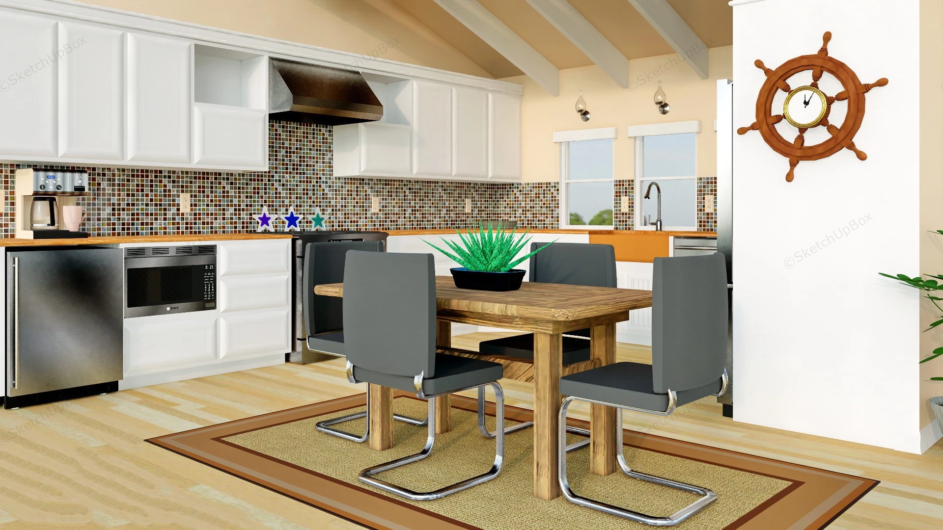 Country Kitchen Dining Room Combo Kitchen 810Country style kitchen and dining room combo idea sketchup 3d model.DownloadEdges:283770Faces:108363File Version:SketchUp 8.skp File Size:25.2 MBTag Count:1Materials:60Render:NoneDining Room SetsKitchen Cabinets