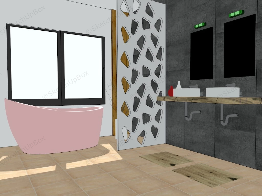 Rustic Bathroom With Pink Tub Bathroom 615Rustic bathroom with pink tub sketchup 3d model.DownloadEdges:258373Faces:163733File Version:SketchUp 8.skp File Size:49.6 MBTag Count:2Materials:24Render:NoneBathroom Ideas