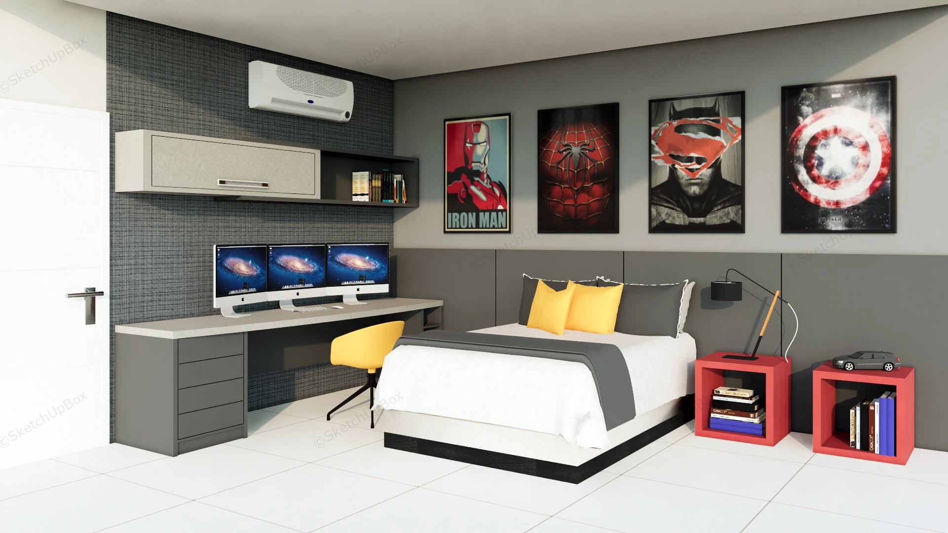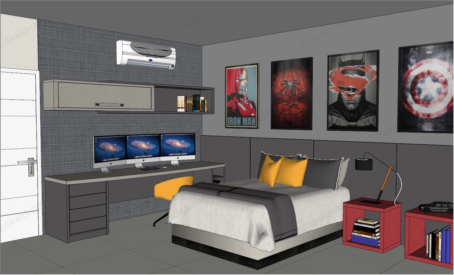 Cool Teen Boy Bedroom Bedroom 612Cool teenage boy bedroom design sketchup 3d model.DownloadEdges:286325Faces:173744File Version:SketchUp 8.skp File Size:45.4 MBTag Count:5Materials:122Render:NoneKids Room