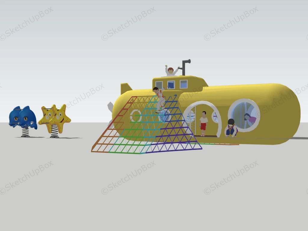 Yellow Submarine Playhouse Playground 595Yellow submarine playhouse sketchup 3d model.DownloadEdges:93572Faces:45490File Version:SketchUp 8.skp File Size:6.14 MBTag Count:3Materials:58Render:NoneKids PlaygroundSubmarines