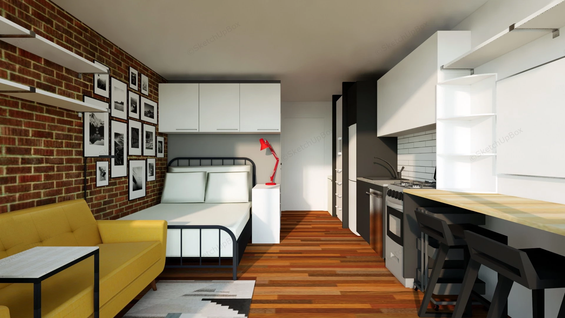 Tiny Studio Apartment Idea Interior Design 905Industry style studio apartment design idea sketchup 3d model.DownloadEdges:257147Faces:106742File Version:SketchUp 8.skp File Size:17.6 MBTag Count:8Materials:95Render:NoneApartments