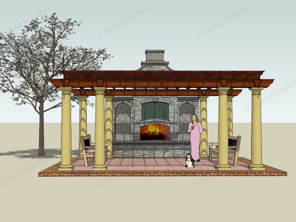 Pergola With Fireplace Architectural Elements 1.34kOutdoor pergola with fireplace idea sketchup 3d model.DownloadEdges:266128Faces:117813File Version:SketchUp 8.skp File Size:5.17 MBTag Count:15Materials:30Render:NoneFireplacesPergolas