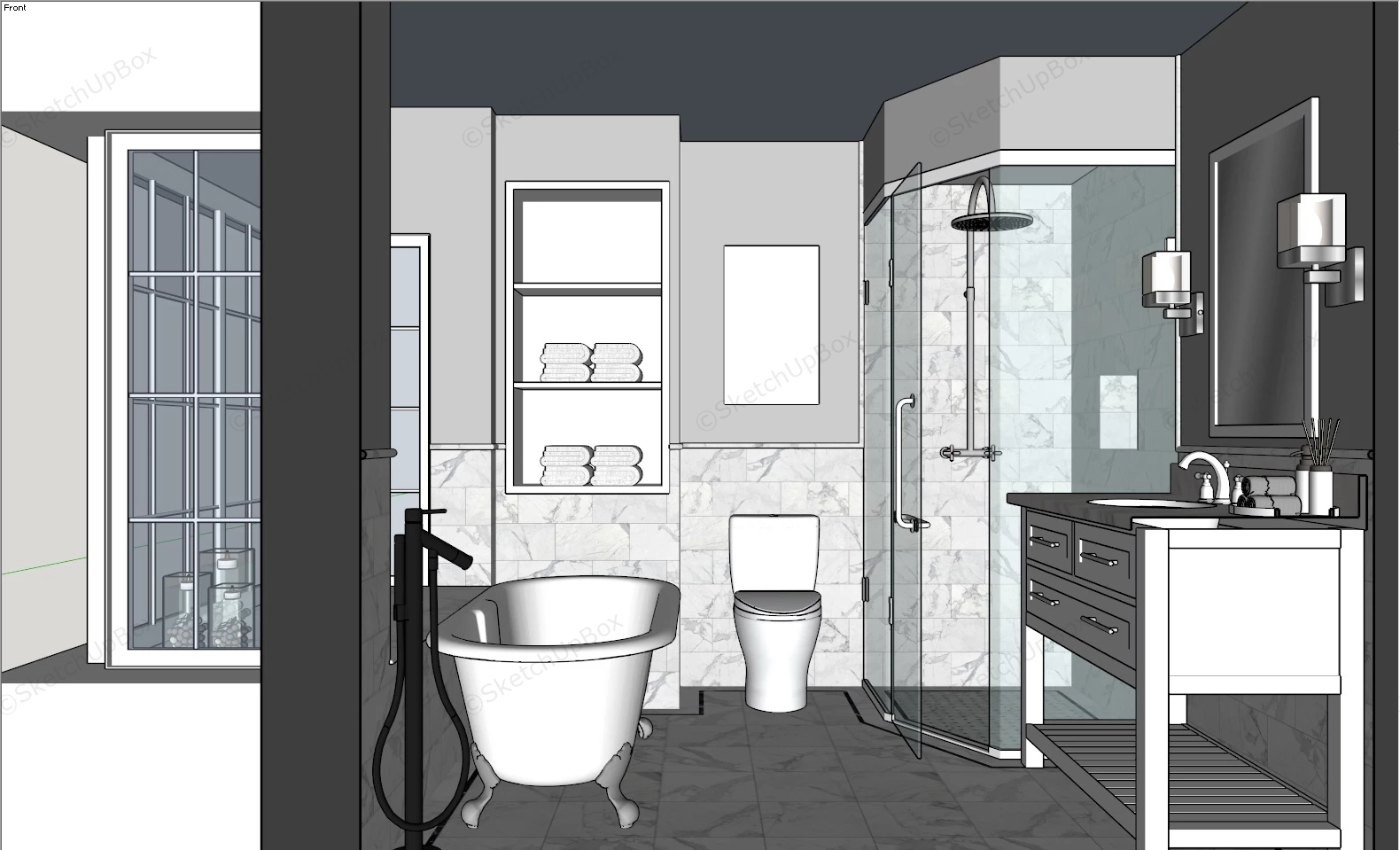 White Bathroom Design Ideas Bathroom 884White bathroom design with tub and shower sketchup 3d model.VIP onlyOnly VIP downloadUpgrade VIPBuy nowEdges:323374Faces:173465File Version:SketchUp 8.skp File Size:18.8 MBTag Count:3Materials:68Render:NoneBathroom IdeasShowers