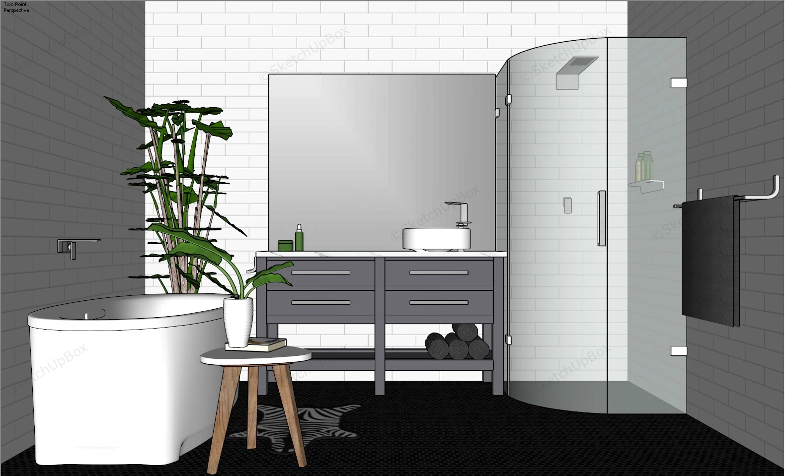 Small Bathroom Design Tub And Shower Bathroom 1.39kSmall white bathroom design with tub and corner shower sketchup 3d model.DownloadEdges:163997Faces:94447File Version:SketchUp 8.skp File Size:21.5 MBTag Count:5Materials:63Render:NoneBathroom IdeasShowers