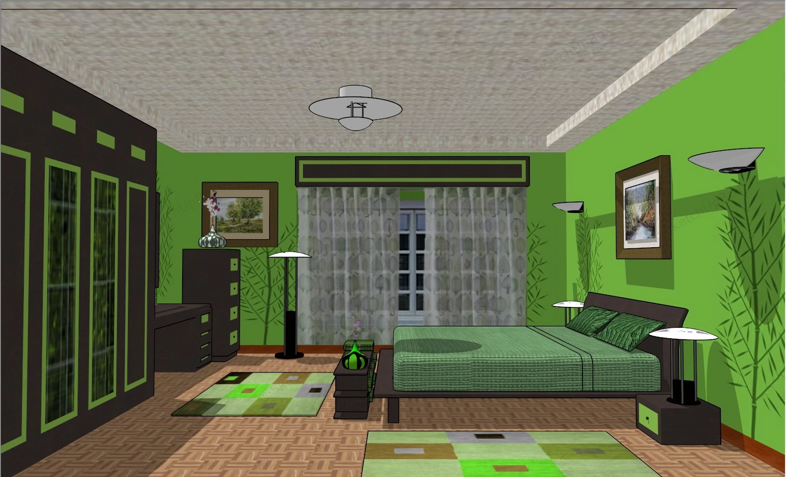 Natural And Green Bedroom Idea Bedroom 723Natural green bedroom design idea sketchup 3d model.DownloadEdges:49352Faces:23394File Version:SketchUp 8.skp File Size:5.65 MBTag Count:5Materials:32Render:NoneBedroom Sets