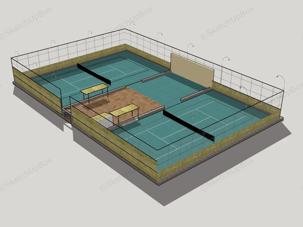 Outdoor Tennis Courts Sports Venue 521Outdoor tennis courts sketchup 3d model.DownloadEdges:2307Faces:448File Version:SketchUp 8.skp File Size:2.06 MBTag Count:1Materials:19Render:NoneSports FacilitiesSports Field