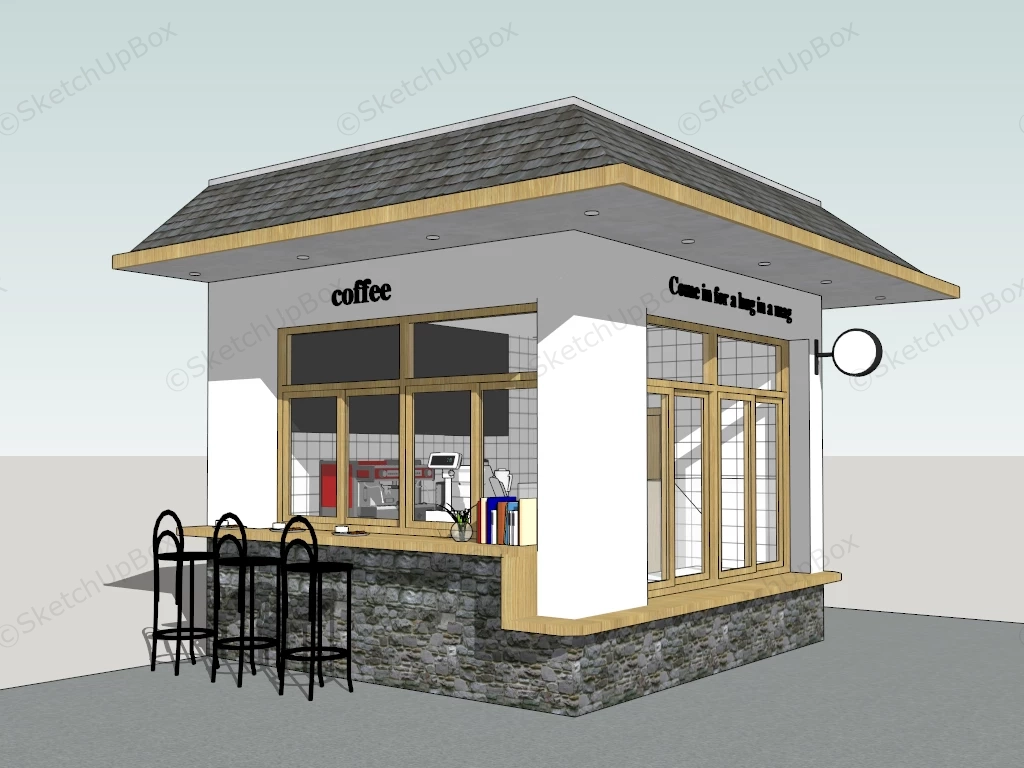 Outdoor Coffee Kiosk Commercial Buildings 1.98kOutdoor small coffee kiosk retail shop with rustic stone wall sketchup 3d model.DownloadEdges:356282Faces:209416File Version:SketchUp 8.skp File Size:30.2 MBTag Count:4Materials:71Render:NoneCoffee ShopKiosk