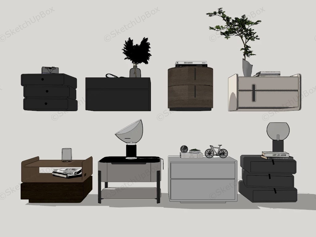 8 Modern Bedroom Nightstands Furniture 287A collection of 8 modern nightstands for bedroom sketchup 3d model.VIP onlyOnly VIP downloadUpgrade VIPBuy nowEdges:665090Faces:404767File Version:SketchUp 8.skp File Size:104 MBTag Count:1Materials:96Render:NoneBedroom FurnitureNightstand
