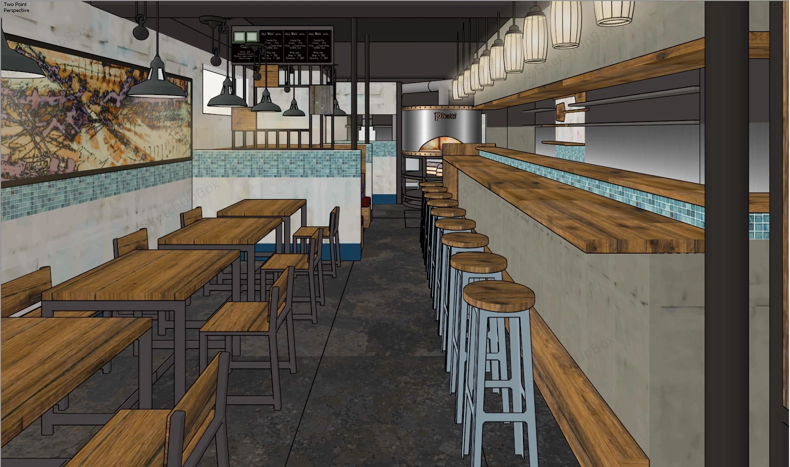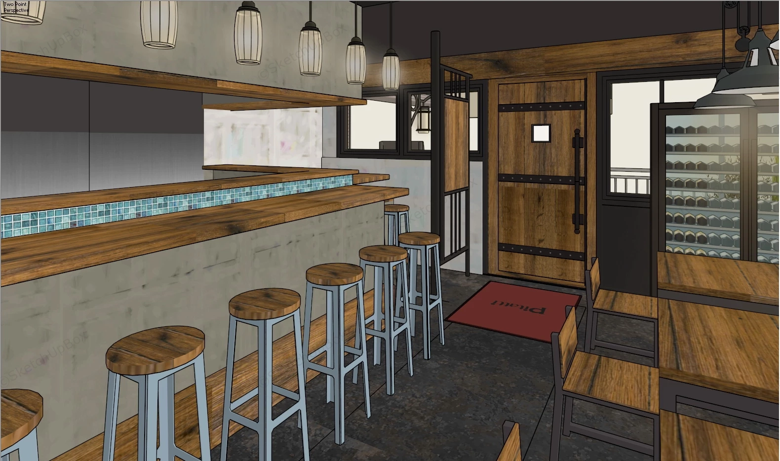 Vintage Cafe Bar Design Commercial Space 1.07kVintage cafe bar design sketchup 3d model.DownloadEdges:82017Faces:34849File Version:SketchUp 8.skp File Size:20.8 MBTag Count:3Materials:140Render:NoneCoffee Shop