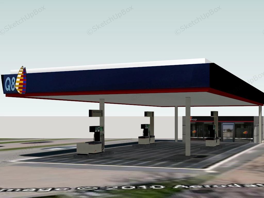 Q8 Gas Station Commercial Buildings 745Q8 gas station sketchup 3d model.DownloadEdges:19602Faces:8704File Version:SketchUp 8.skp File Size:2.22 MBTag Count:3Materials:16Render:NoneGas Station