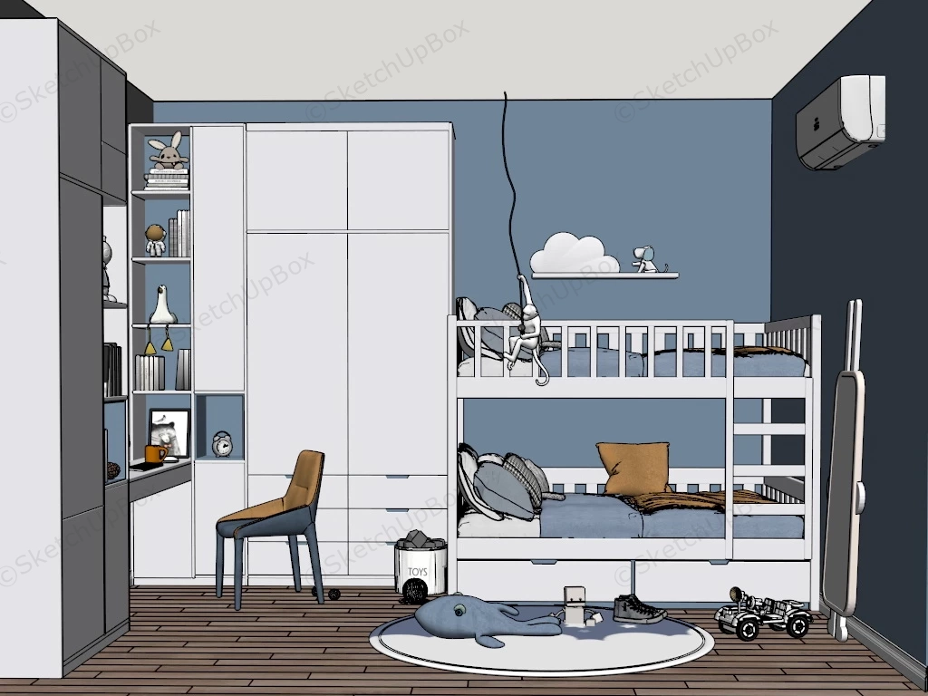 Blue And White Boys Bedroom Bedroom 403Blue and white boy bedroom design with wardrobe desk and bunk bed sketchup 3d model.VIP onlyOnly VIP downloadUpgrade VIPBuy nowEdges:1788567Faces:1171983File Version:SketchUp 8.skp File Size:296 MBTag Count:1Materials:151Render:NoneKids Room