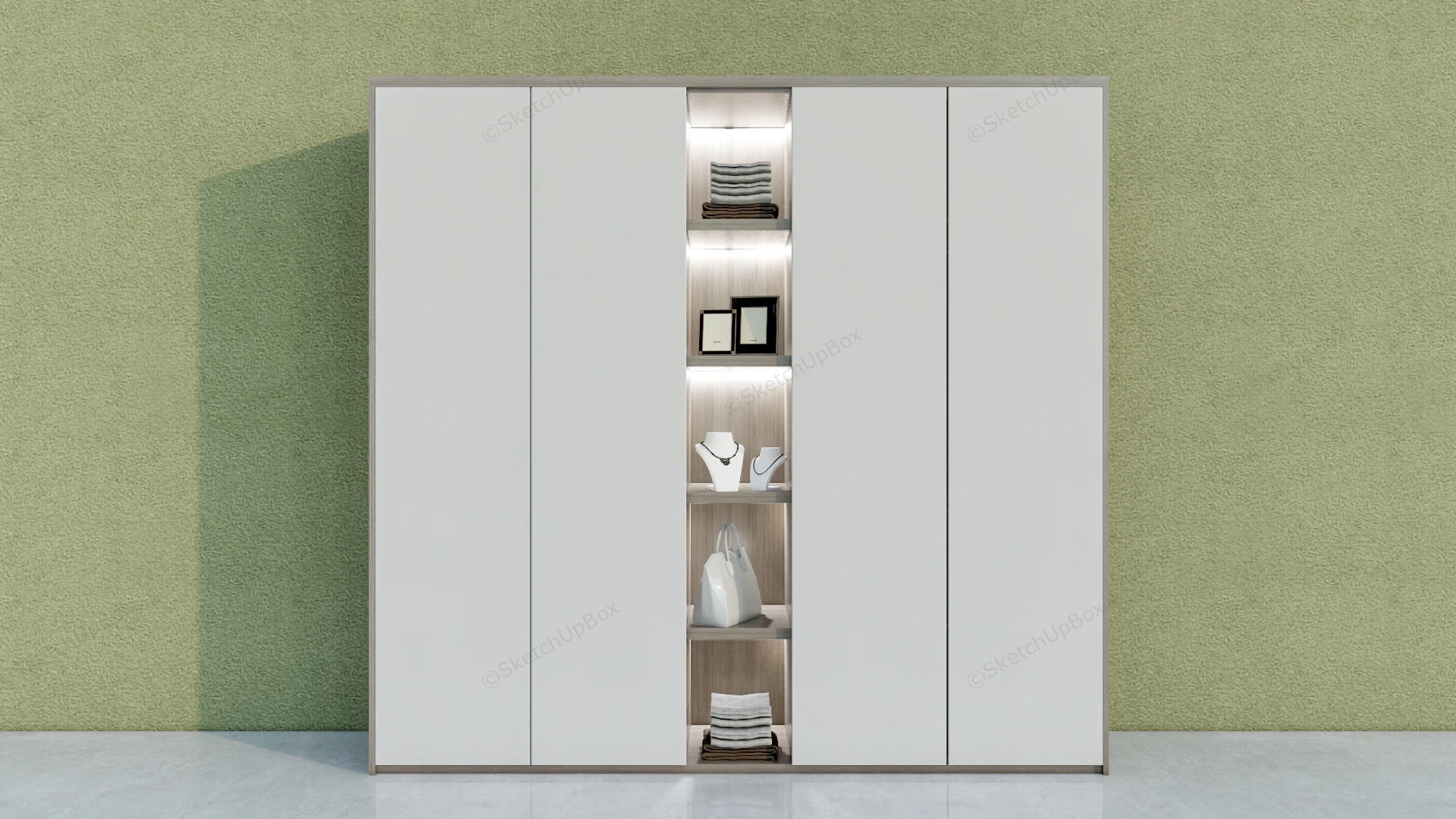 Modern Wardrobe With Shelves Furniture 1.54kModern wardrobe with shelves design sketchup 3d model.DownloadEdges:161777Faces:103608File Version:SketchUp 8.skp File Size:29.6 MBTag Count:1Materials:18Render:NoneWardrobe