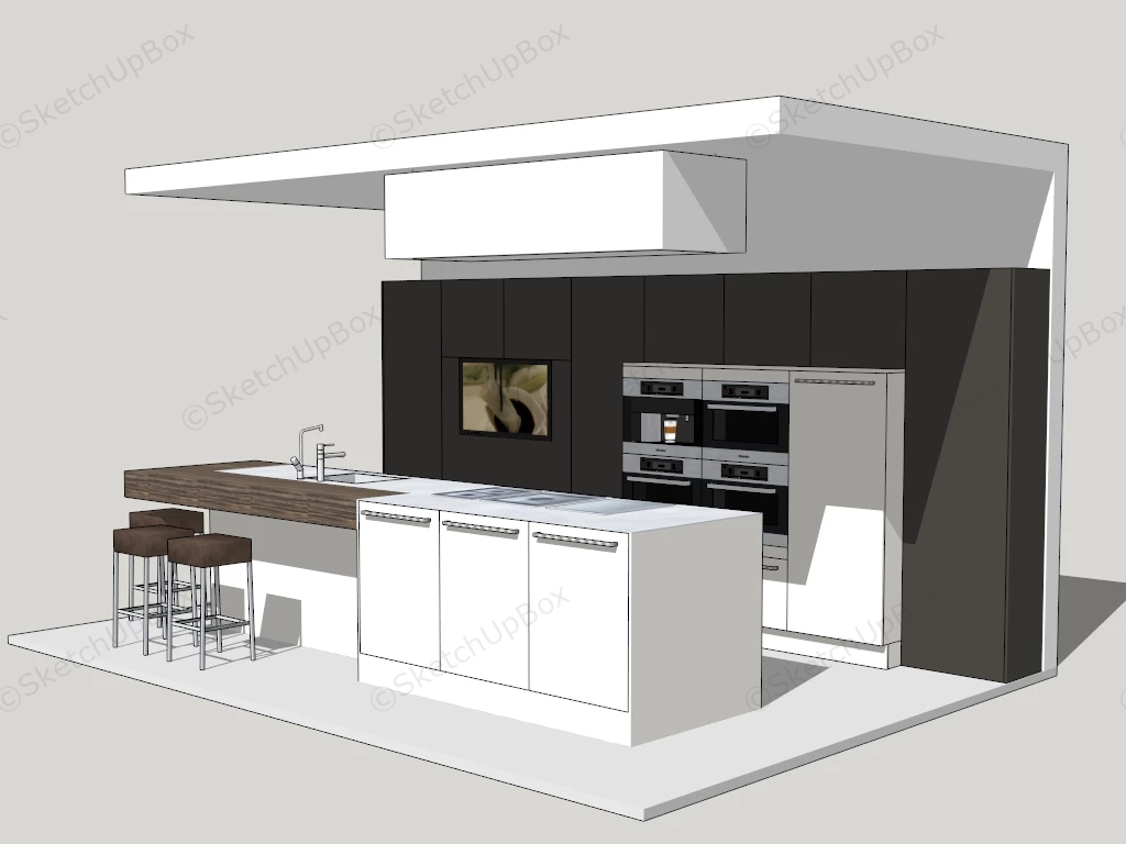 Modern Kitchen With Island Kitchen 903Modern kitchen with island sketchup 3d model.DownloadEdges:33775Faces:12480File Version:SketchUp 8.skp File Size:3.2 MBTag Count:2Materials:55Render:NoneKitchen CabinetsKitchen Island
